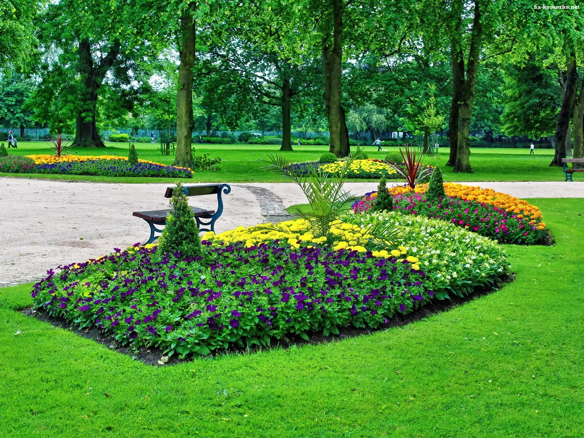 Park, Ławka, Klomby, Alejka na Komórkę