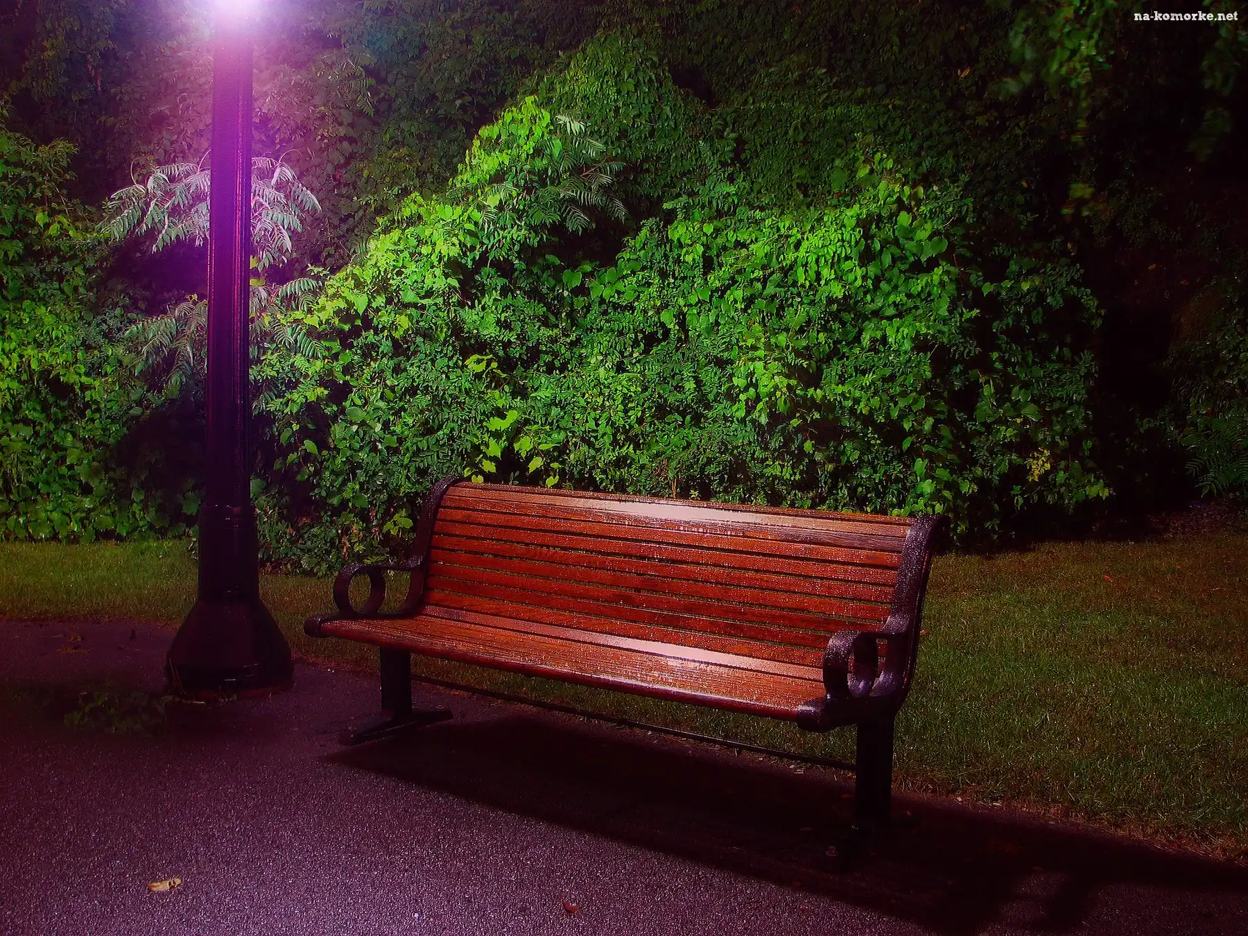 Park, Lampa, Krzewy, Ławka na Komórkę