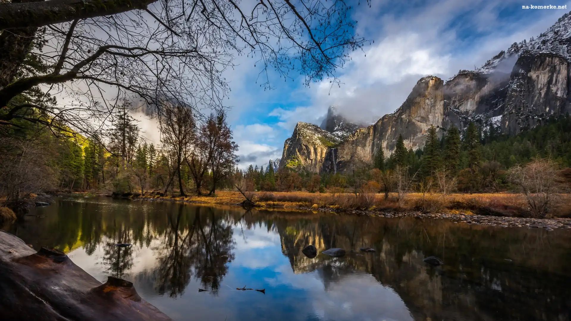 Park Narodowy Yosemite, Stany Zjednoczone, Rzeka, Góry, Chmury, Stan Kalifornia, Drzewa, Sierra Nevada, Merced River na Komórkę |