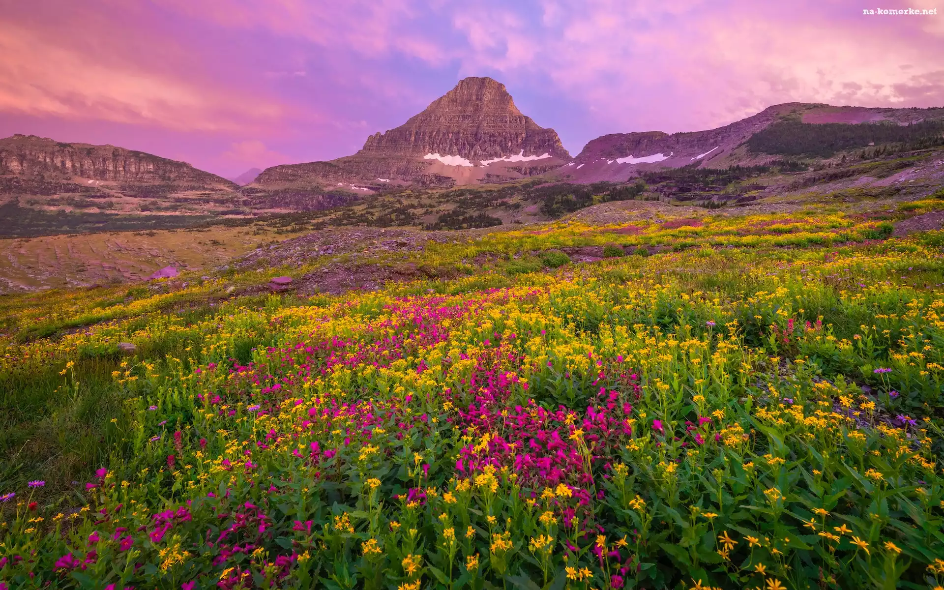 Mount Reynolds, Łąka, Stany Zjednoczone, Kwiaty, Park Narodowy Glacier, Góra, Montana na Komórkę