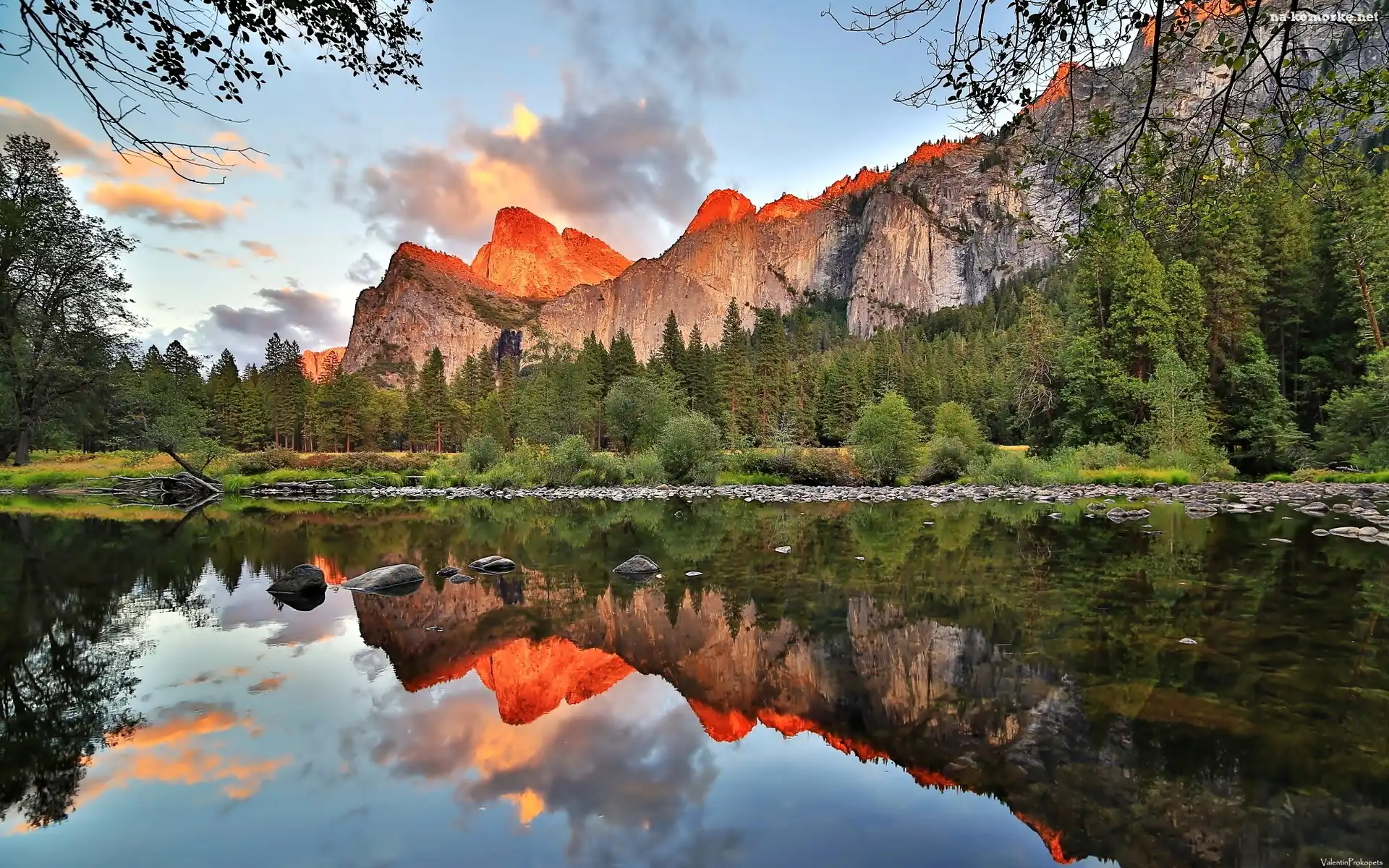 Rzeka, Stany Zjednoczone, Stan Kalifornia, Park Narodowy Yosemite, Góry na Komórkę