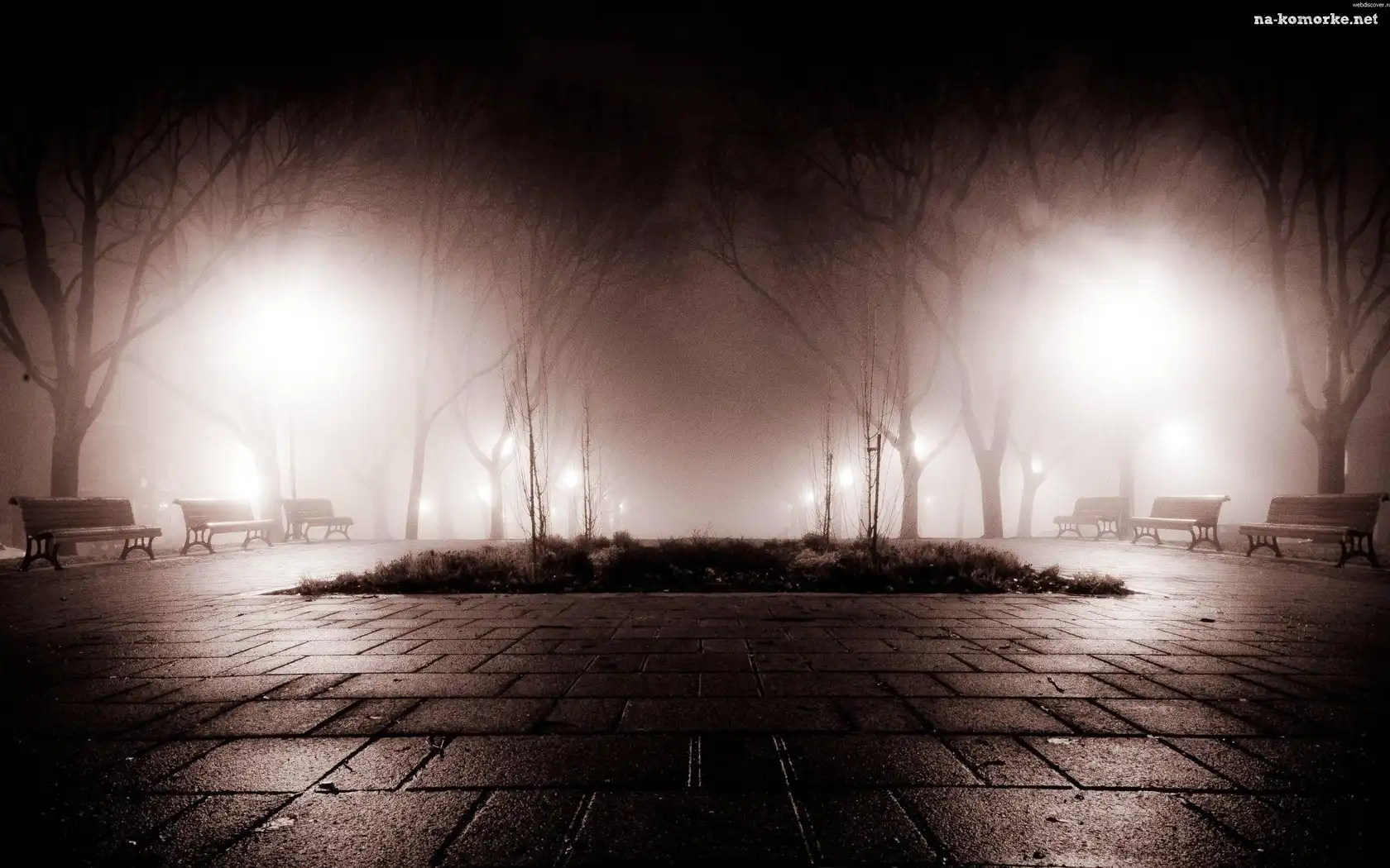 Park, Ławki, Noc, Światła na Komórkę
