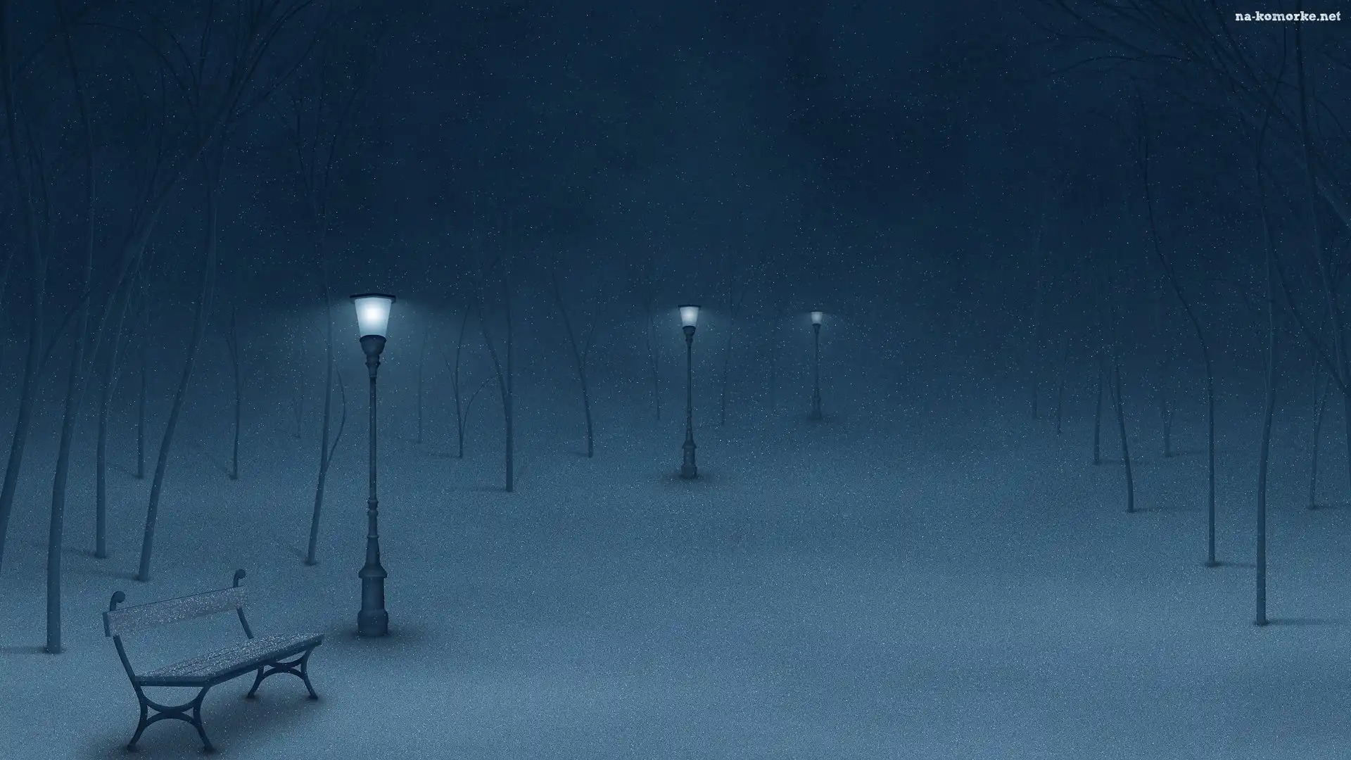 Park, Latarnie, Noc, Śnieg na Komórkę