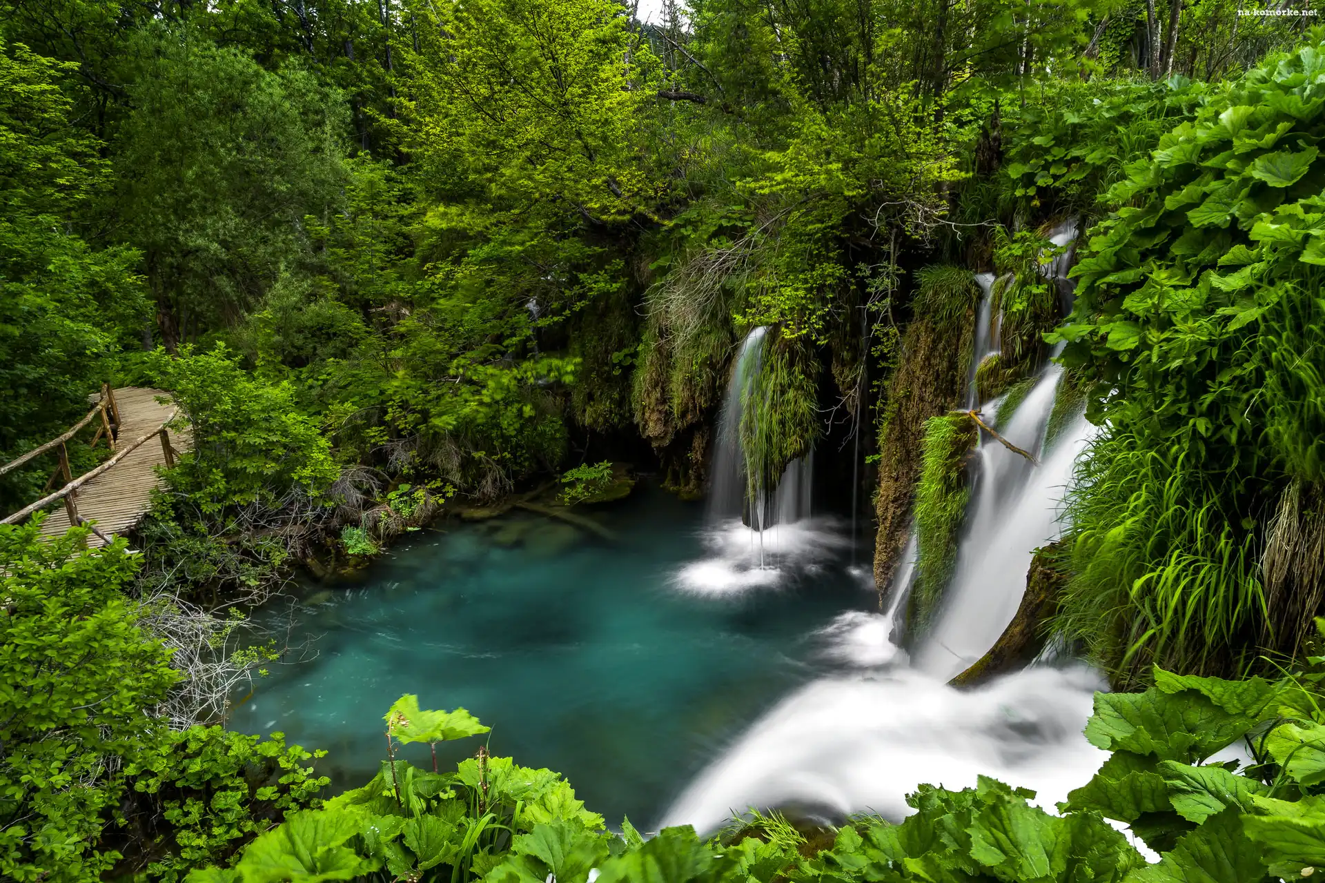 Mostek, Park Narodowy Jezior Plitwickich, Chorwacja, Wodospad, Roślinność na Komórkę