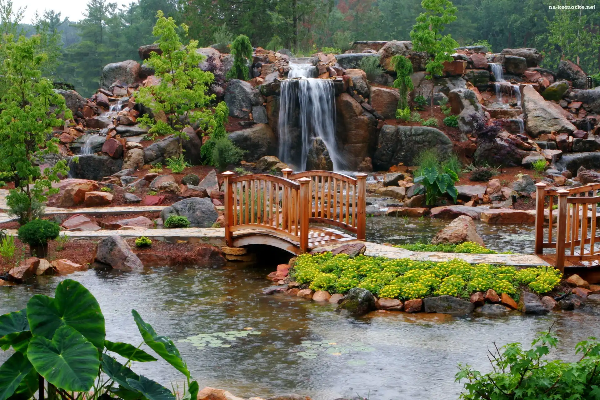Park, Mostek, Rzeczka, Wodospad na Komórkę