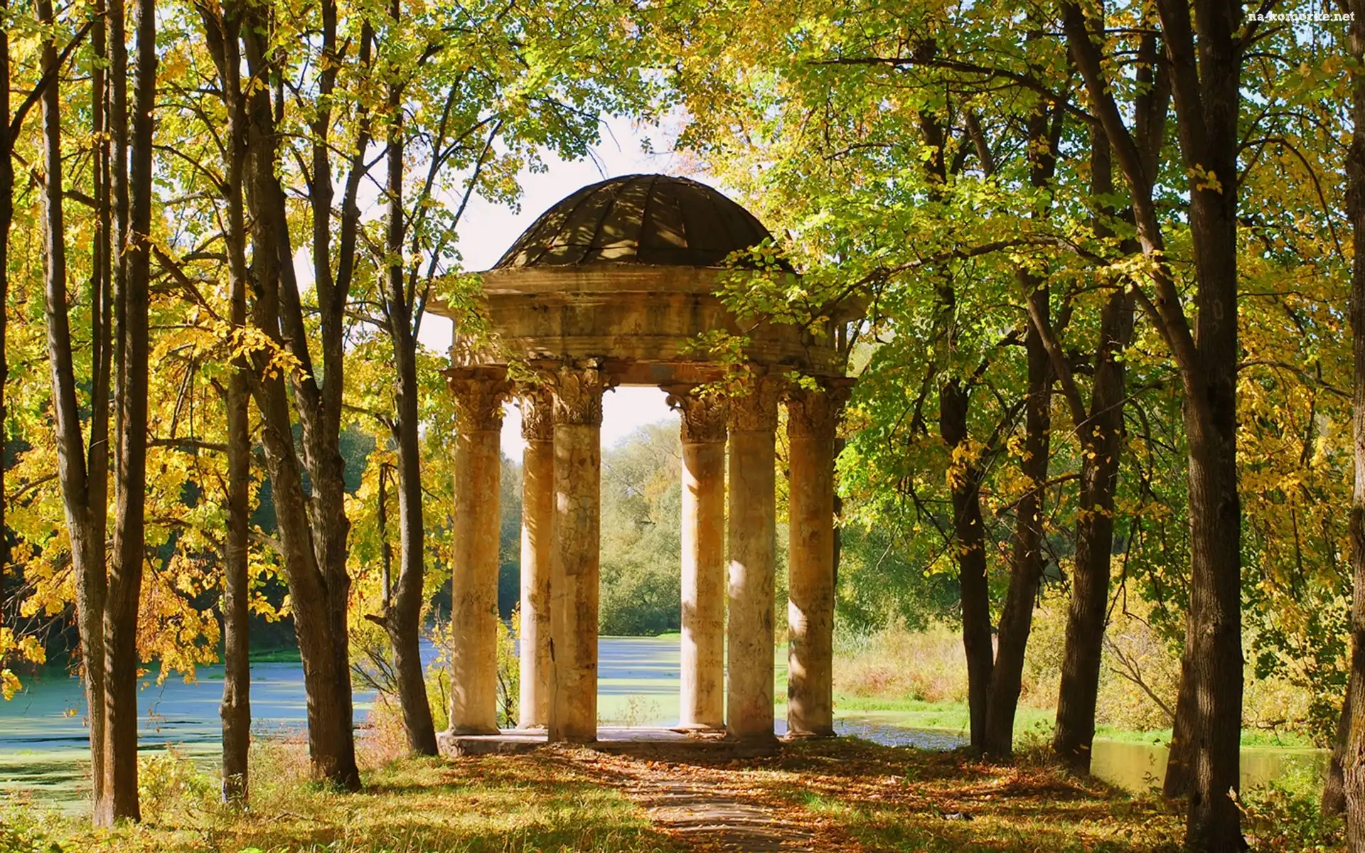 Park, Budowla, Rzeka, Jesień na Komórkę