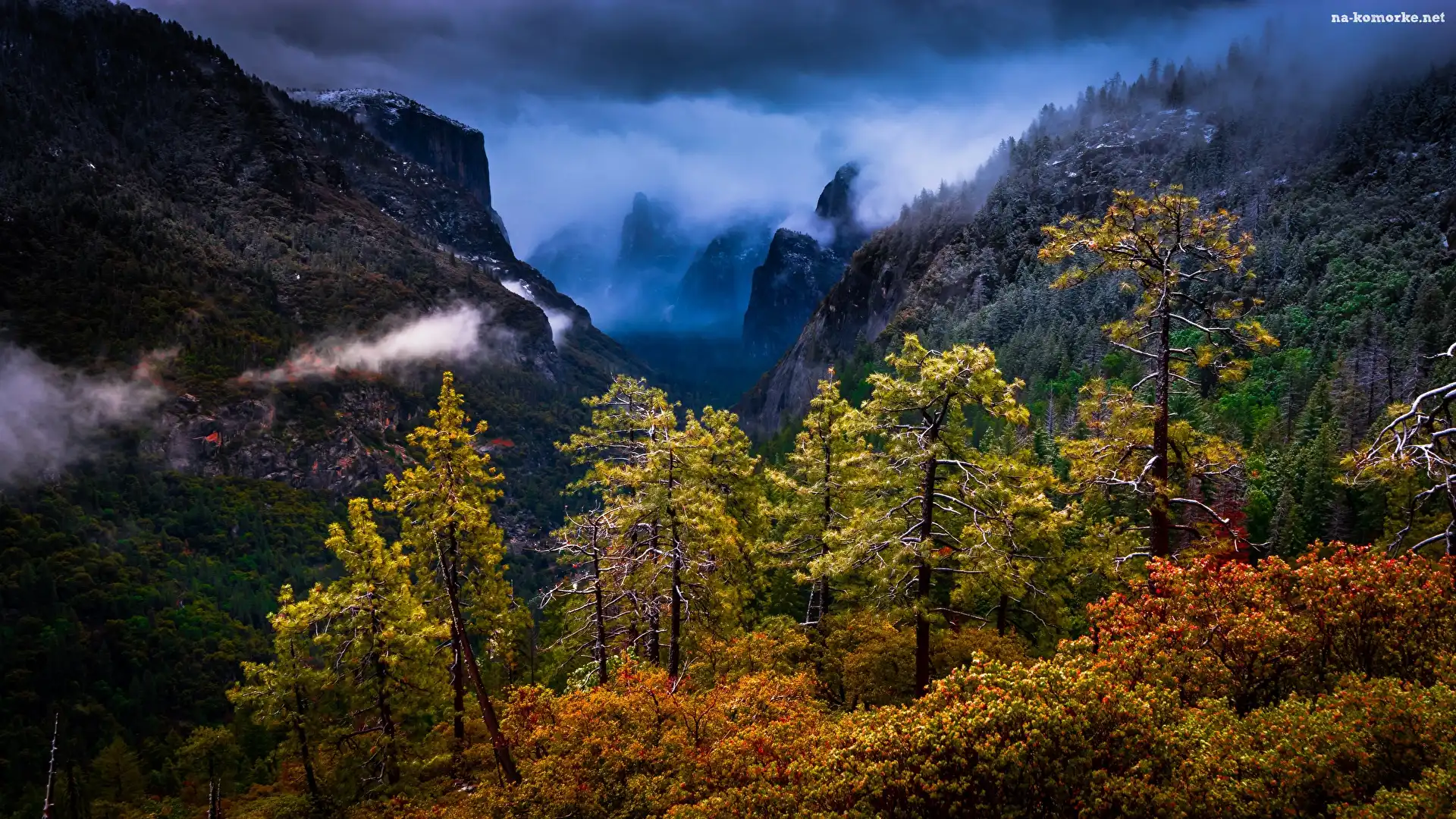 Park Narodowy Yosemite, Stan Kalifornia, Sierra Nevada, Stany Zjednoczone, Góry, Las, Drzewa, Chmury na Komórkę |