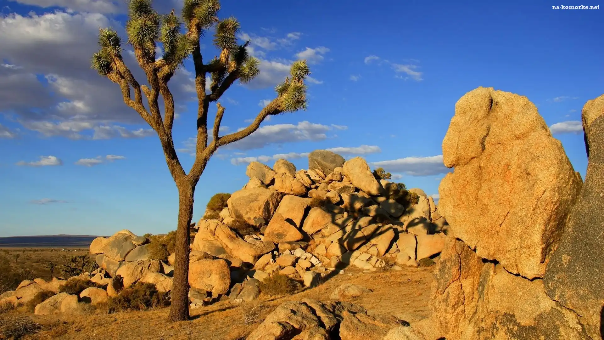 Skały, Kalifornia, Stany Zjednoczone, Jukka krótkolistna, Park Narodowy Joshua Tree, Drzewo Jozuego na Komórkę |