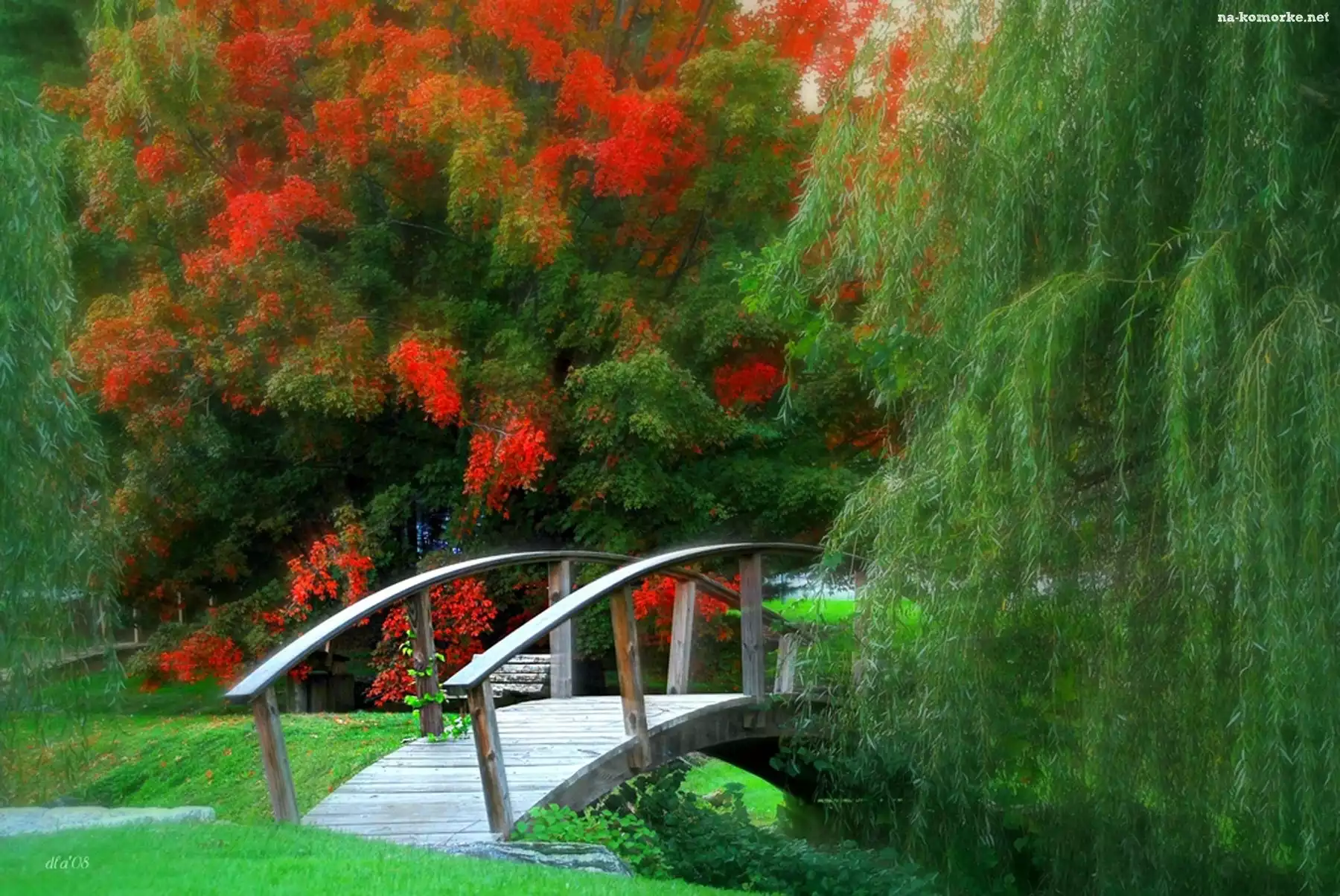 Park, Grafika, Wierzba, Mostek na Komórkę