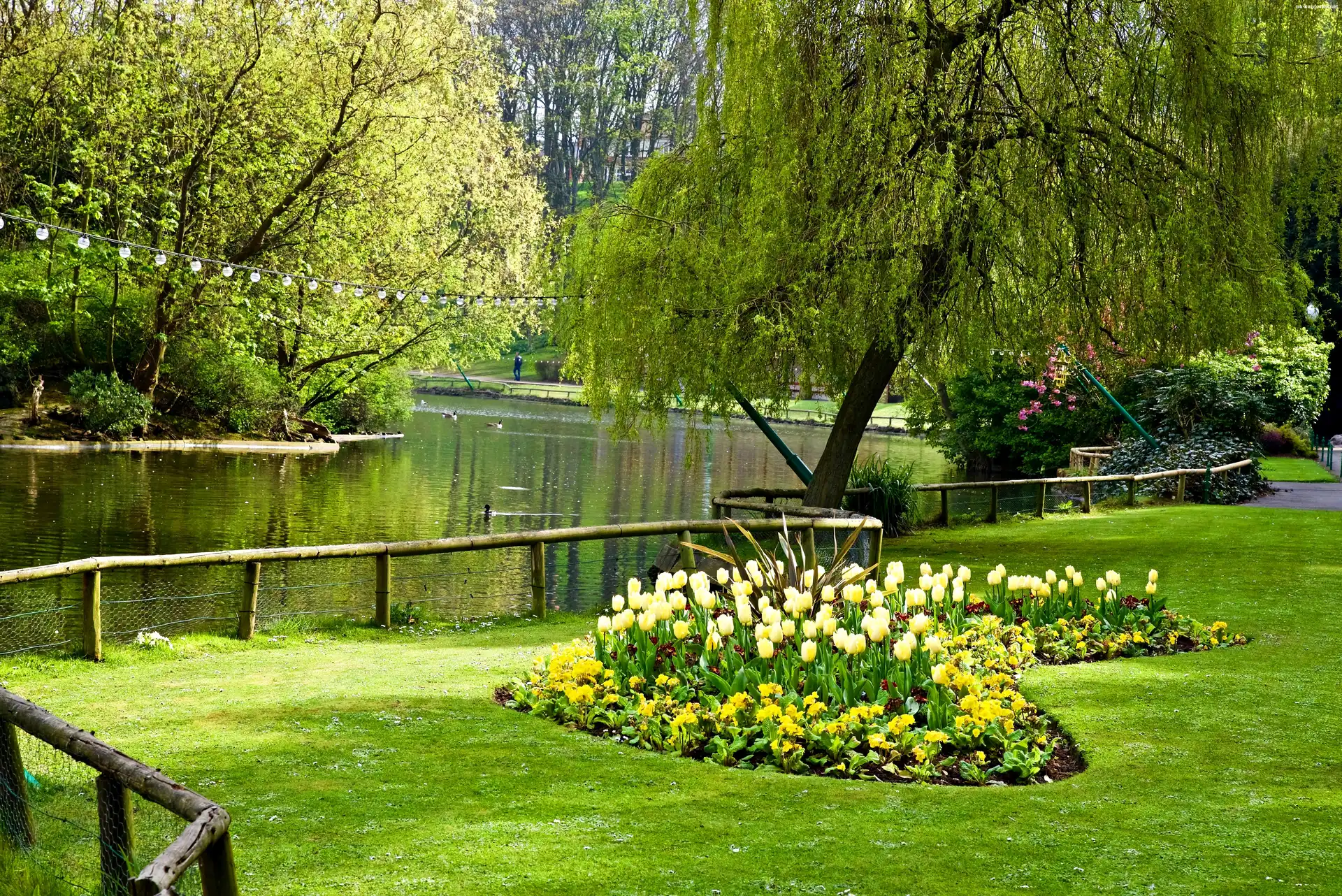 Wiosna, Park, Staw na Komórkę