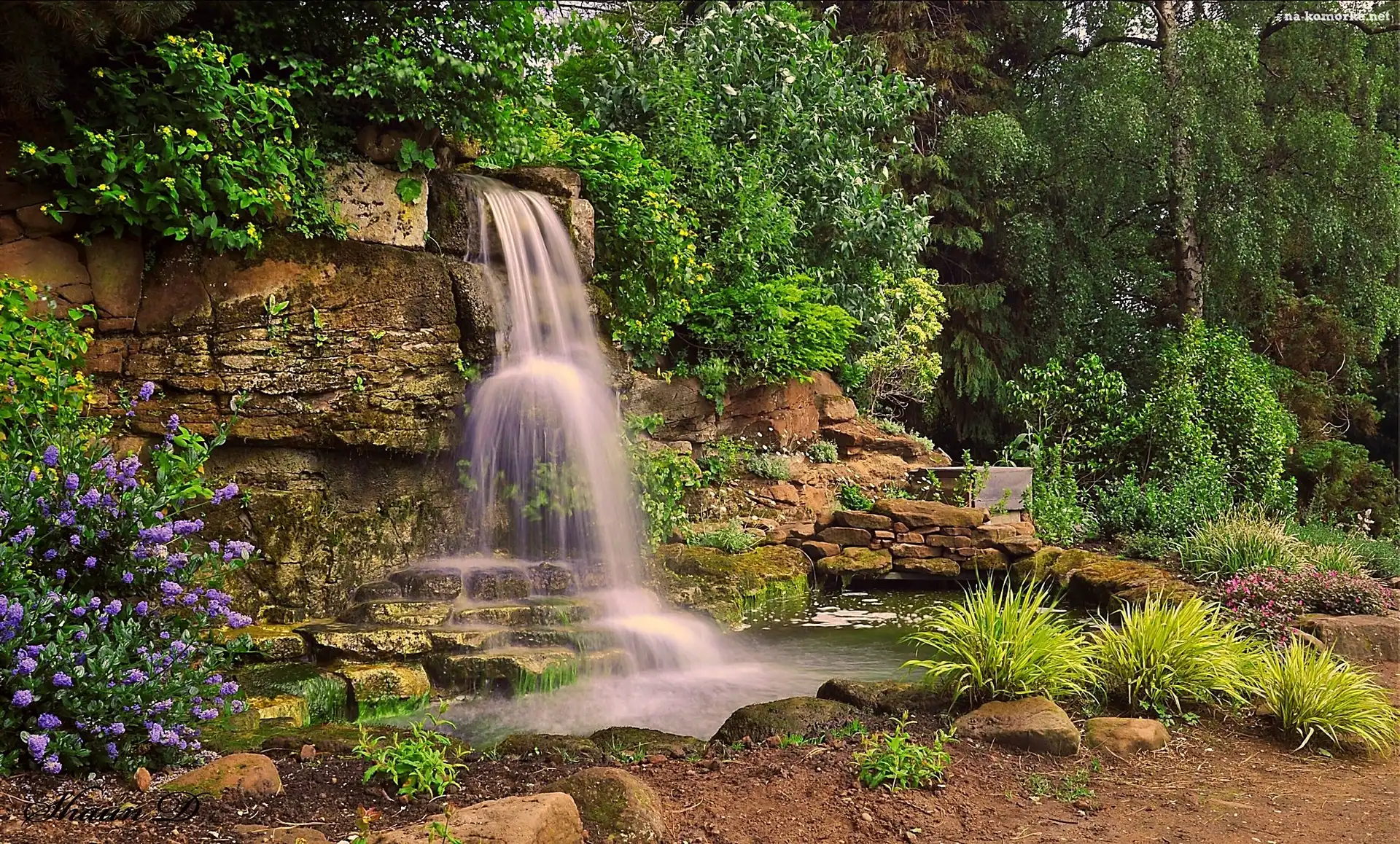 Park, Roślinność, Wodospad, Skały na Komórkę