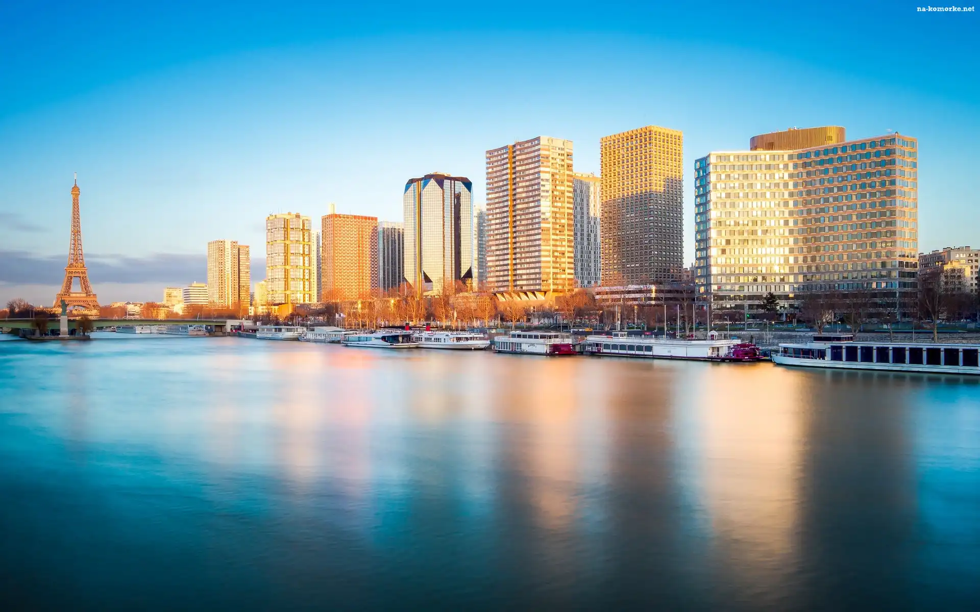 Paryż, Rzeka, Wieża, Eiffla, Wieżowce na Komórkę