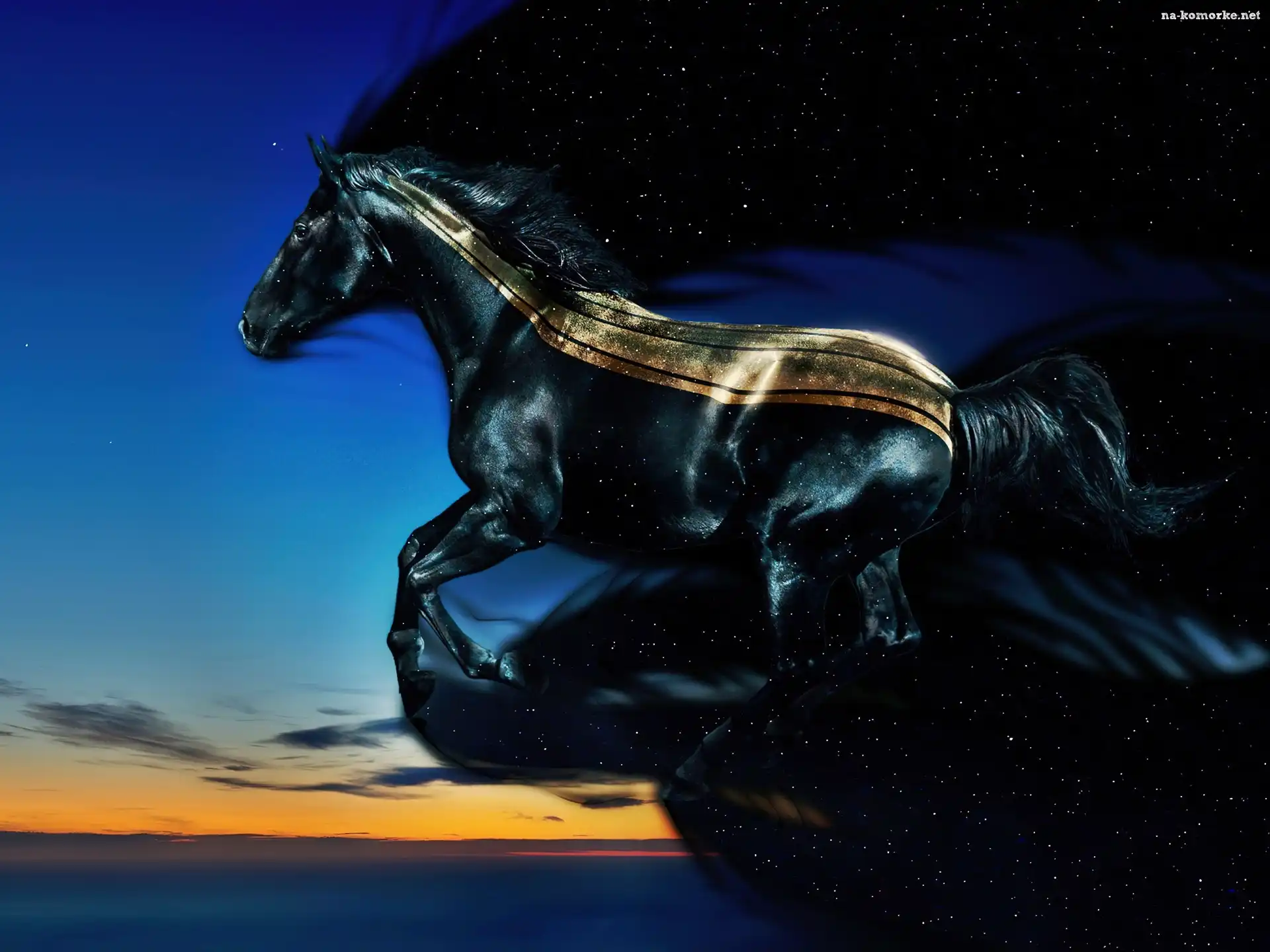 Paski, Czarny, Koń, Niebo, Złote na Komórkę