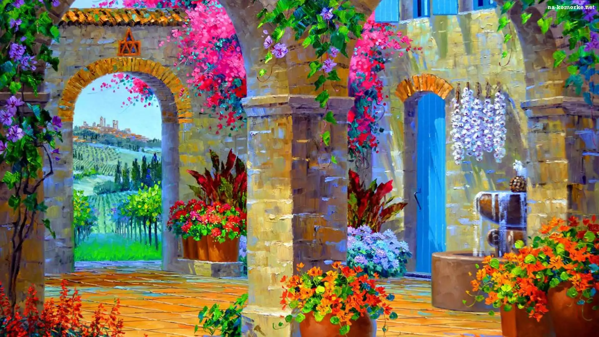 Łuki, Dom, Tarasy, Patio, Kwiaty na Komórkę