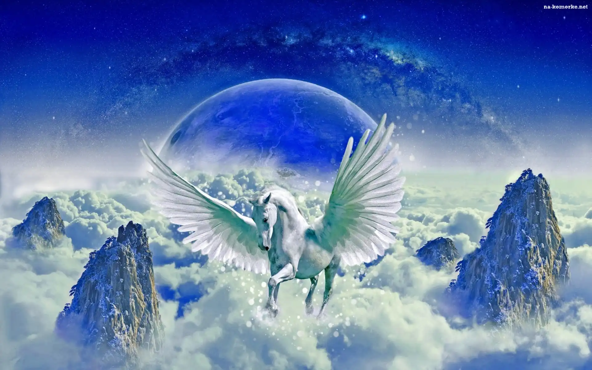 Pegaz, Fantasy, Góry, Chmury na Komórkę