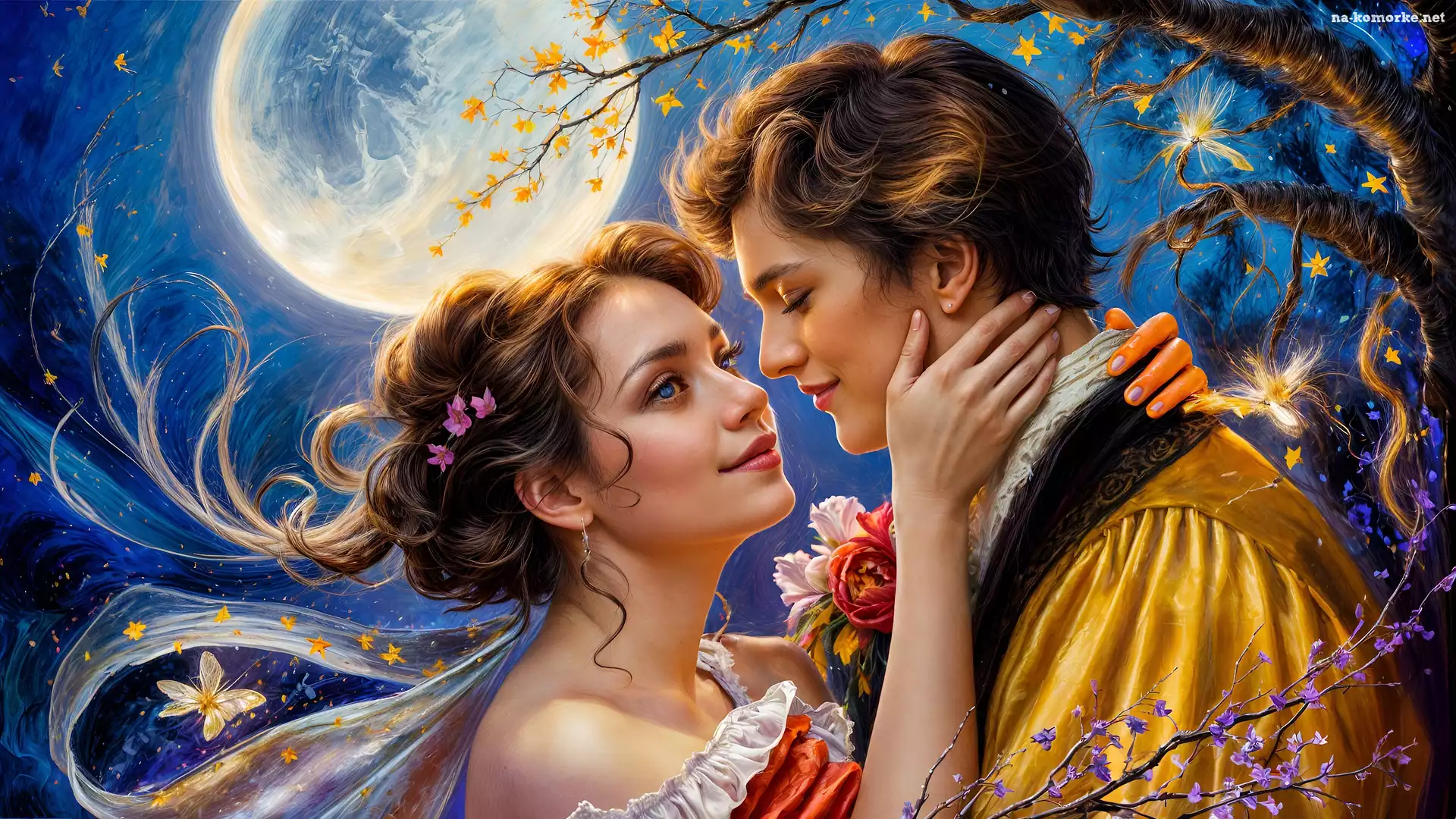 Księżyc, Kobieta, Drzewo, Pełnia. Grafika, Zakochani, Mężczyzna na Komórkę