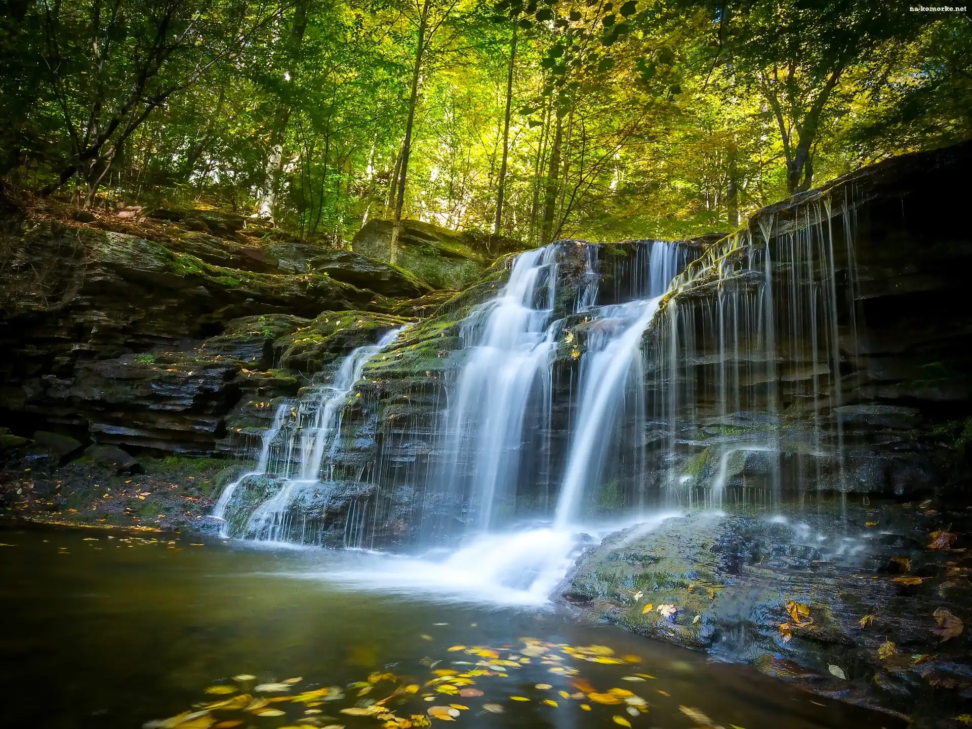 Pensylwania, Wodospad, Las, Jeziorko, Jesień na Komórkę