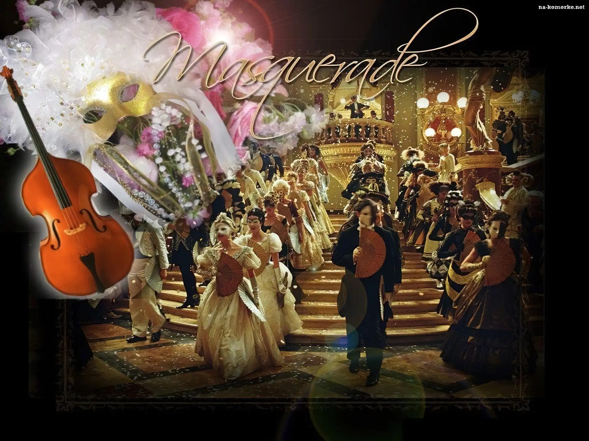 skrzypce, Phantom Of The Opera, bal, maski, postacie na Komórkę