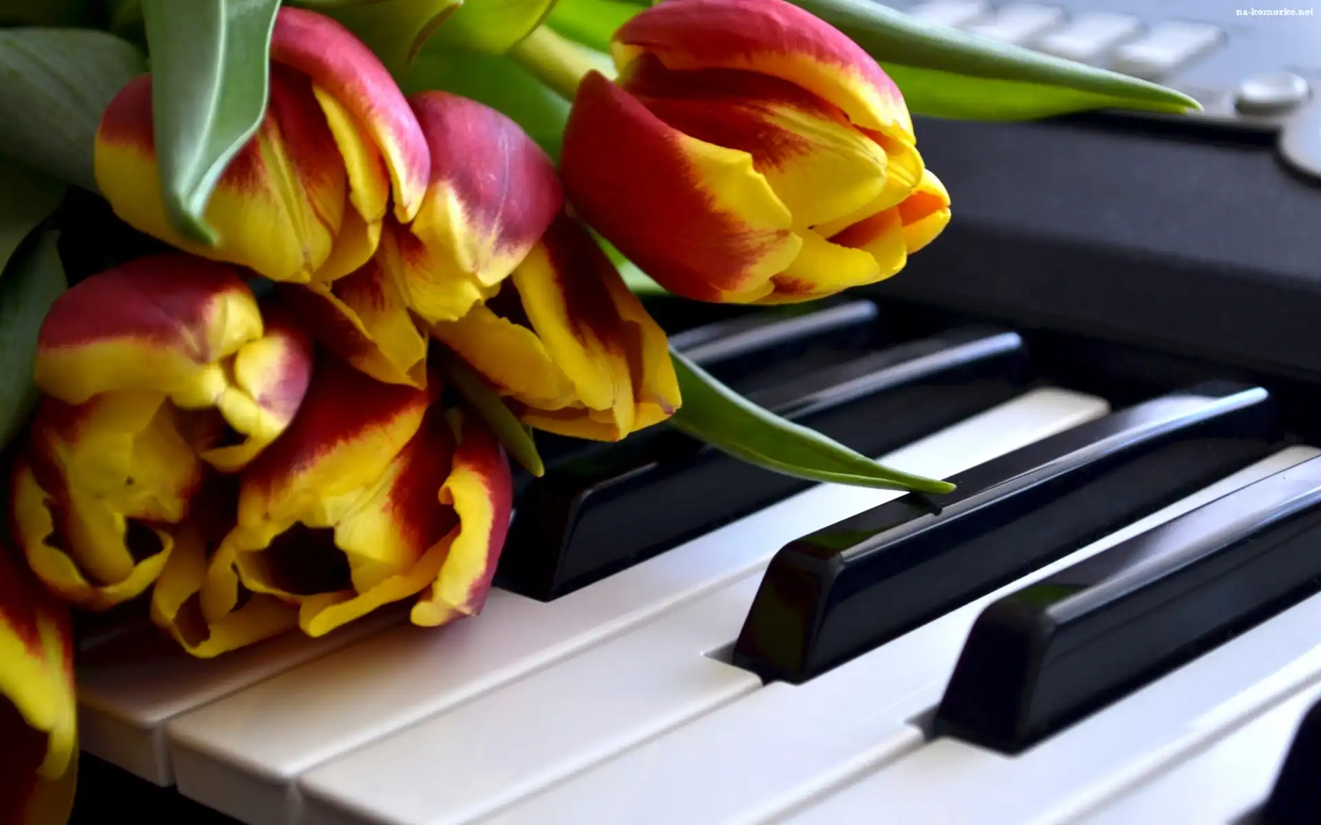 Pianino, Żółto, Czerwone, Tulipany, Klawisze na Komórkę