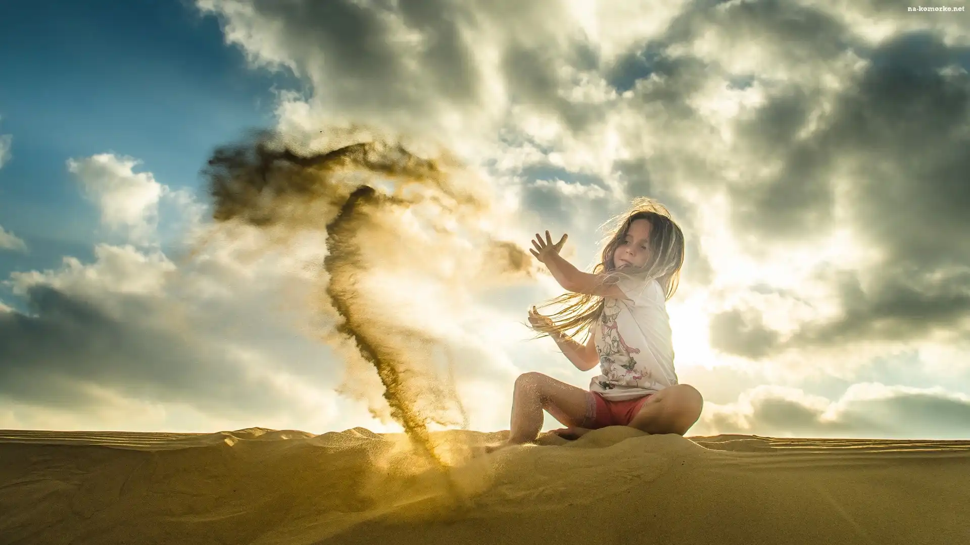 Dziewczynka, Piasek, Zabawa na Komórkę
