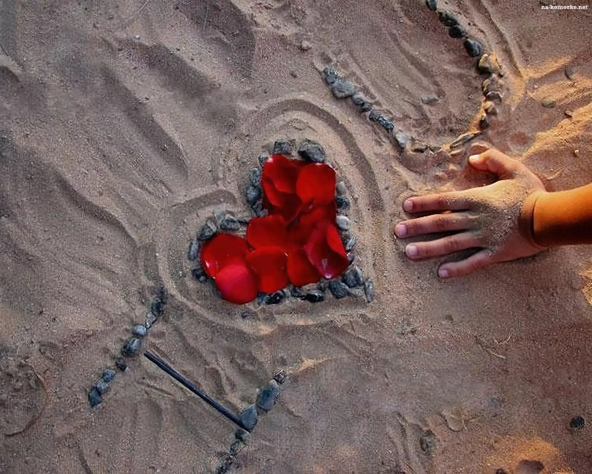 Piasek, Miłość, Kamyki, Płatki na Komórkę