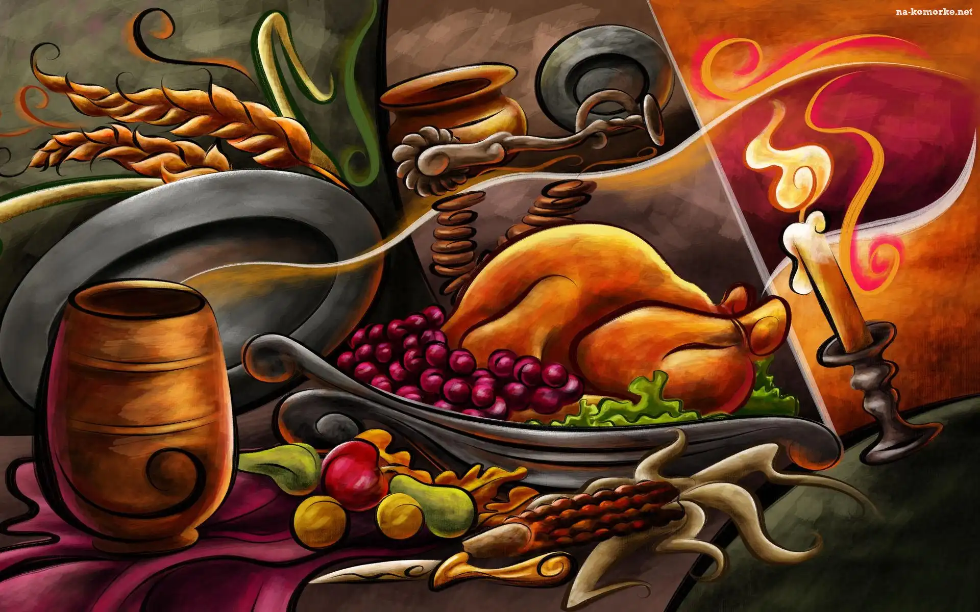 Kurczak, Pieczony, Owoce na Komórkę