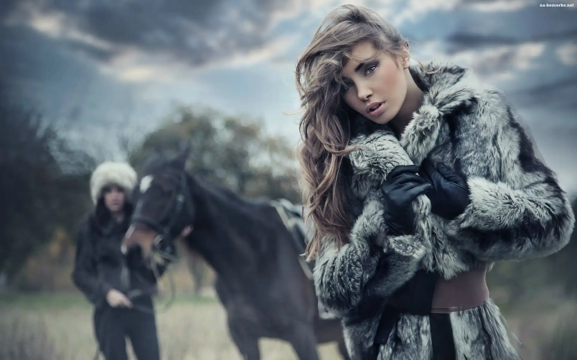 Piękna, Łąka, Kobieta, Koń na Komórkę