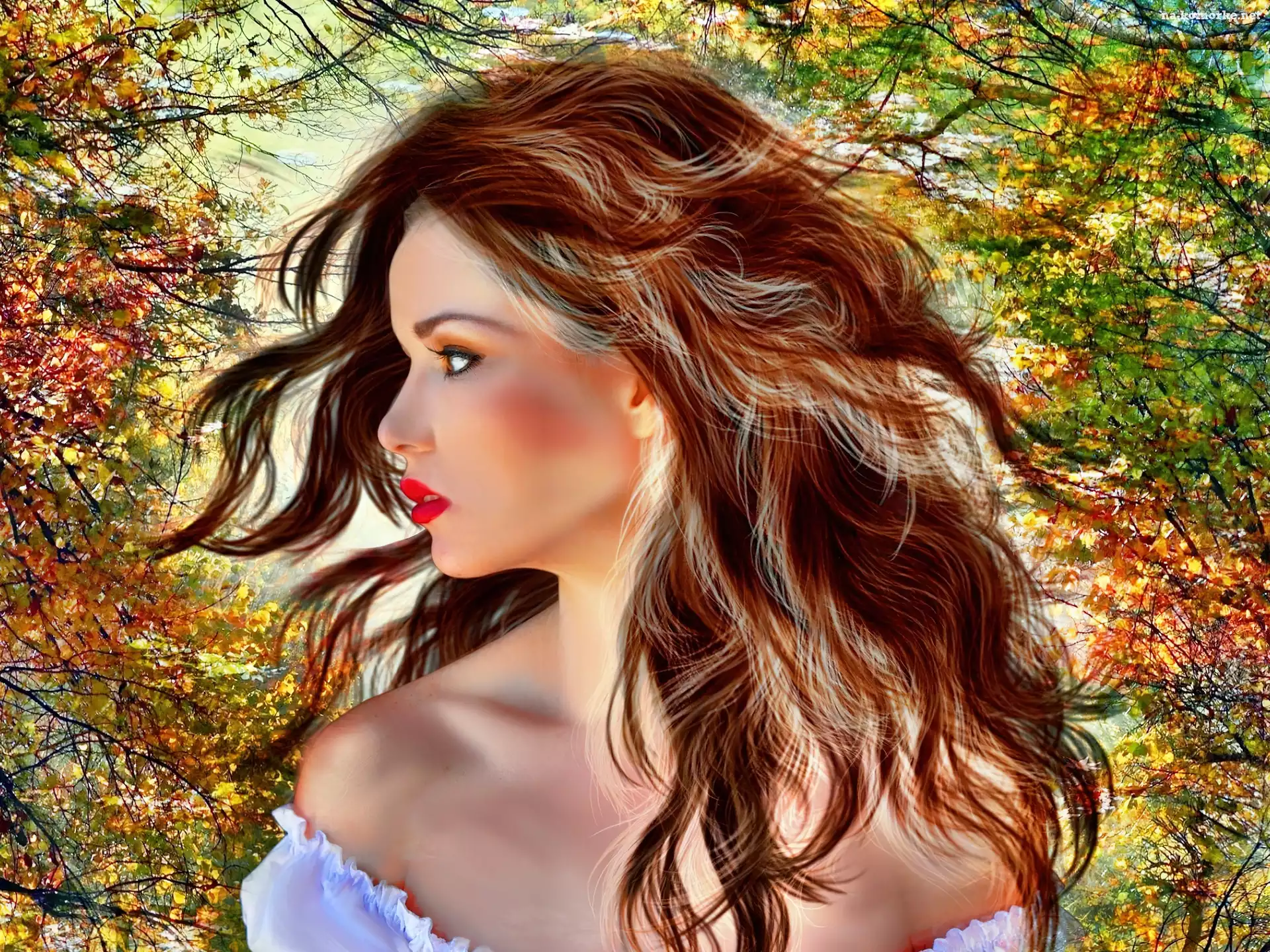 Piękna, Drzewa, Kobieta, Jesienne na Komórkę