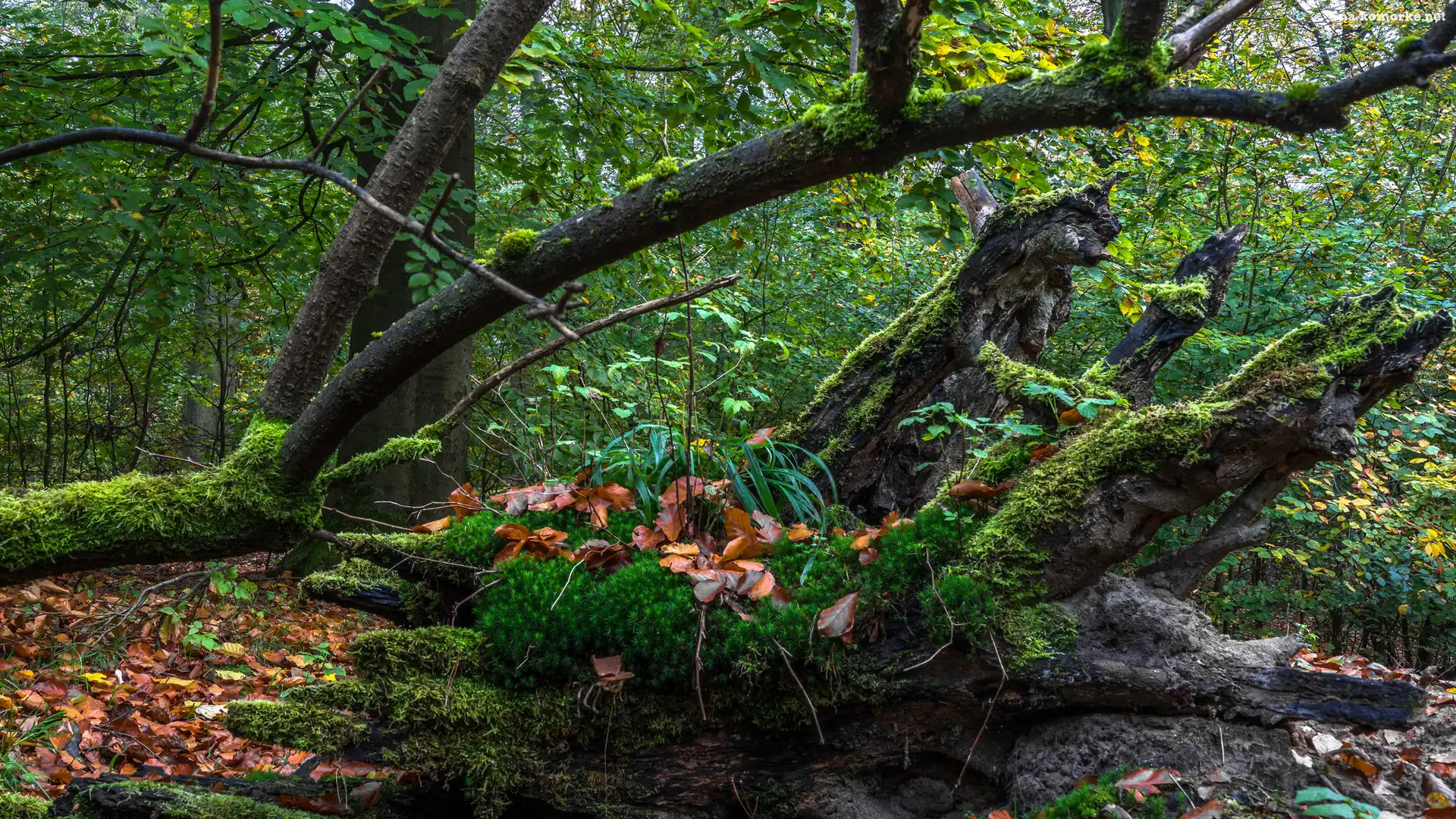 Powalone, Las, Spróchniały, Drzewo, Liście, Gałęzie, Zielone, Omszały, Pień na Komórkę