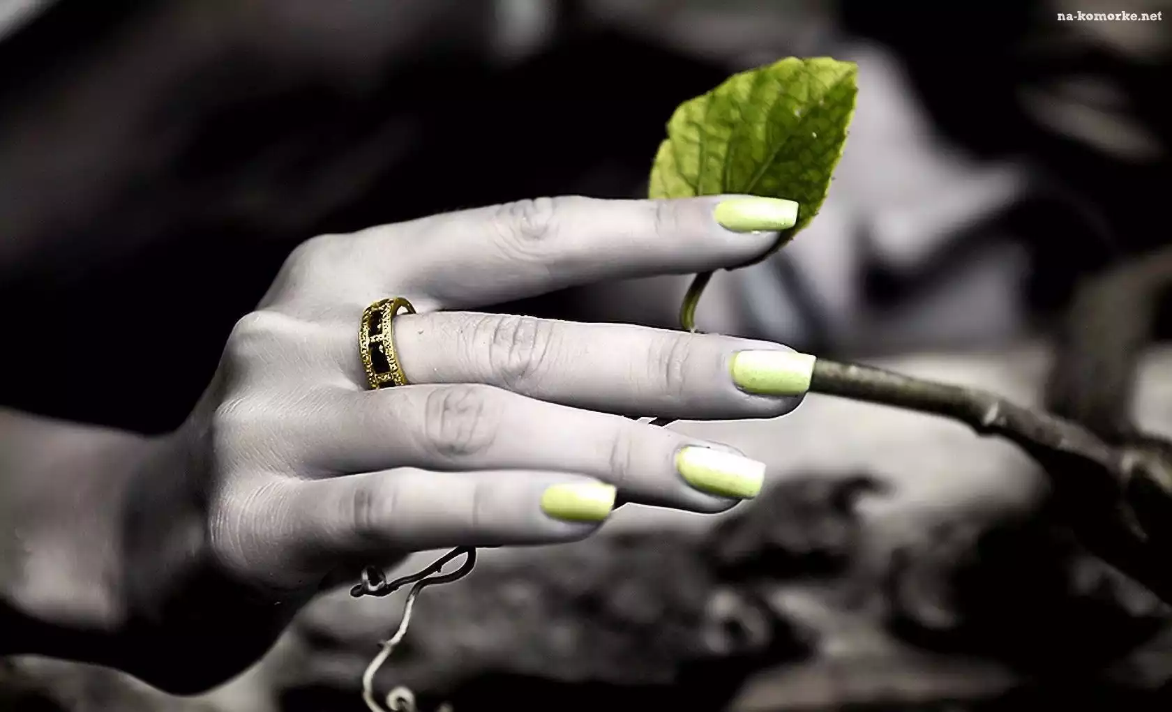 Ręka, Pierścionek, Listek na Komórkę