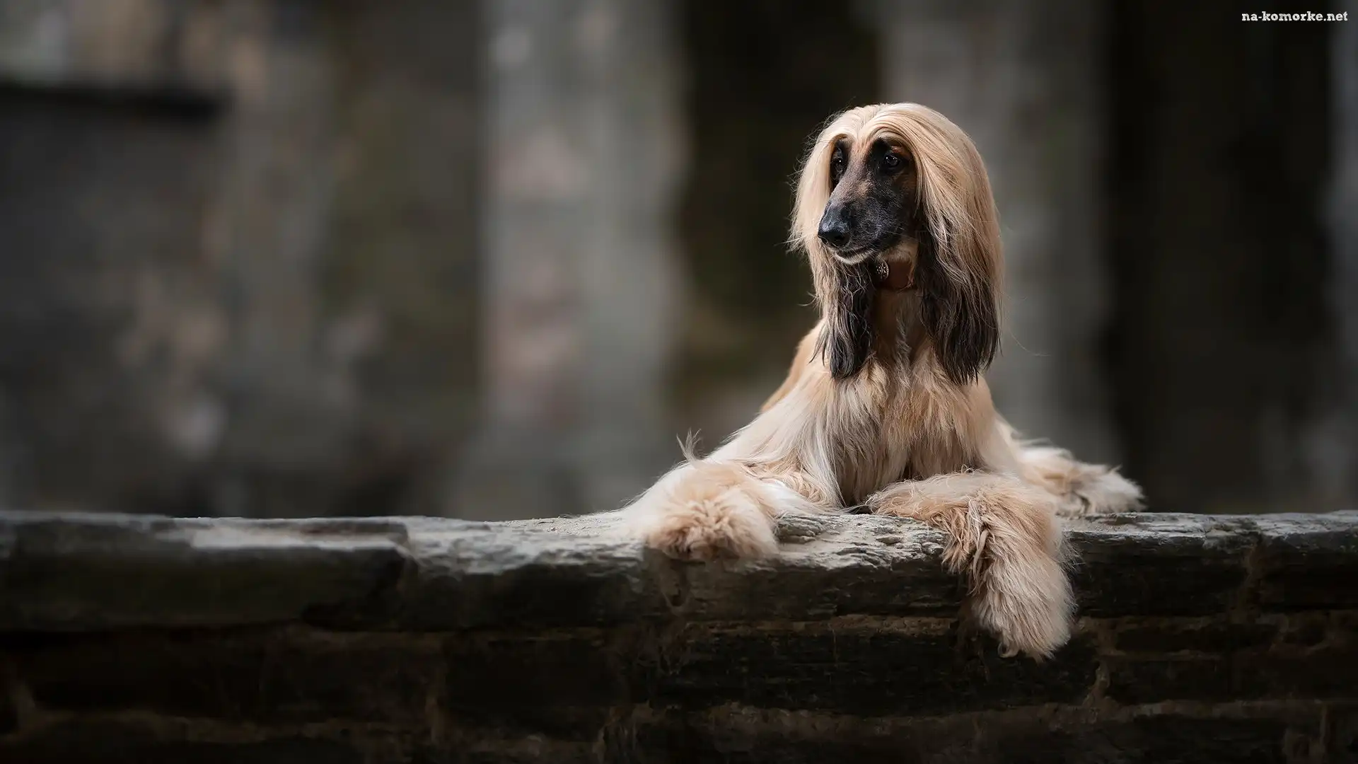 Chart Afgański, Zieleń Charty afgańskie, Tło, Portret, Czarne Pies, Chart afgański, Murek