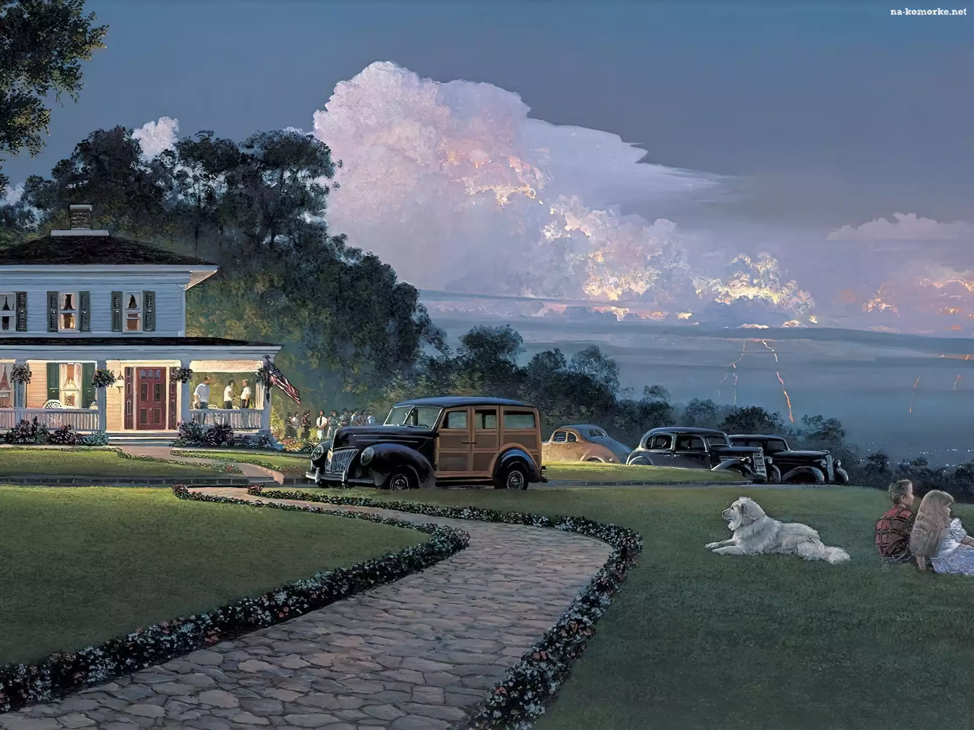 Droga, Auta, Dzieci, Dom, Pies na Komórkę