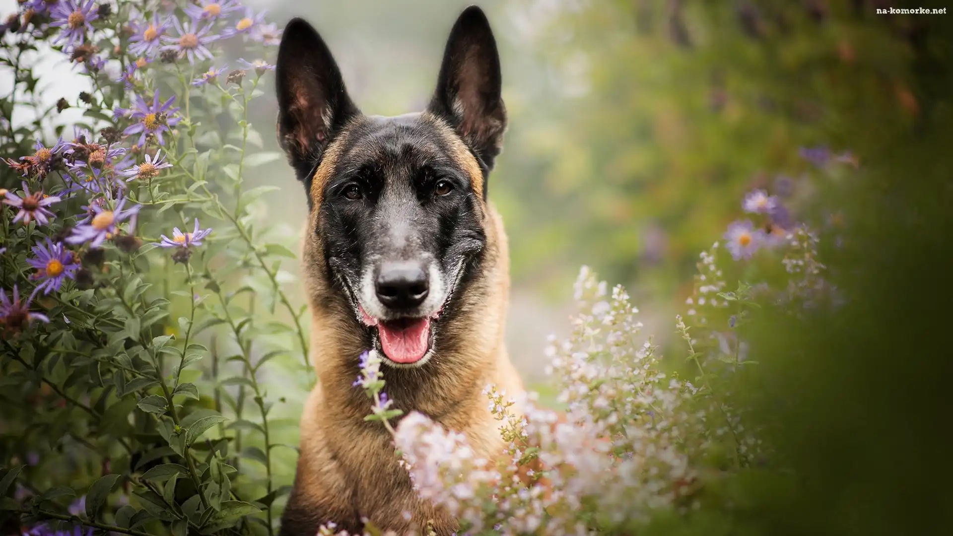 Pies, Kwiaty, Mordka, Owczarek belgijski Malinois na Komórkę
