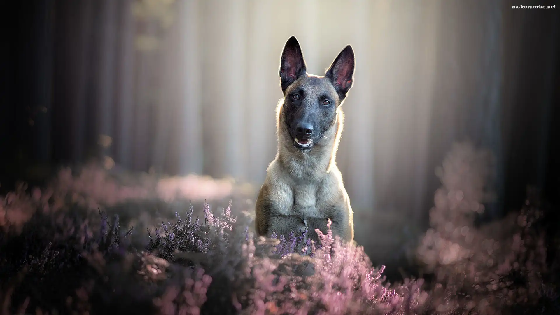 Pies, Wrzosy, Mordka, Owczarek belgijski Malinois na Komórkę