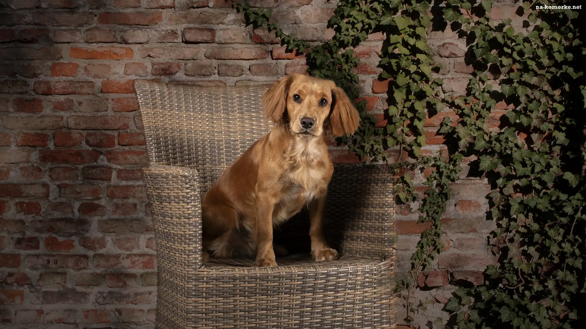 Bluszcz, Pies, Working cocker spaniel, Fotel, Ściana na Komórkę