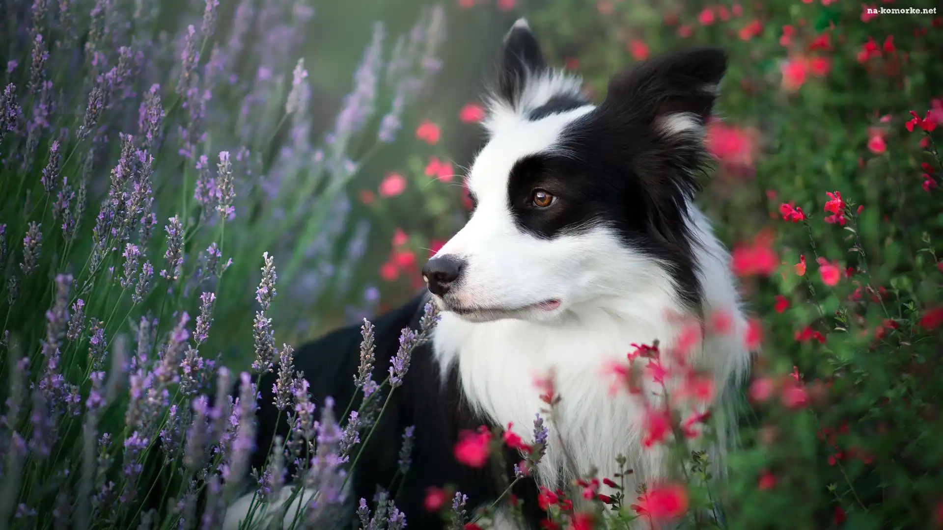 Pies, Kwiaty, Border collie, Łąka na Komórkę