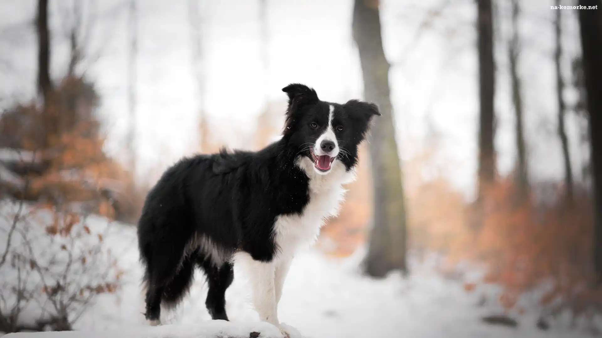 Pies, Śnieg, Border collie, Drzewa na Komórkę