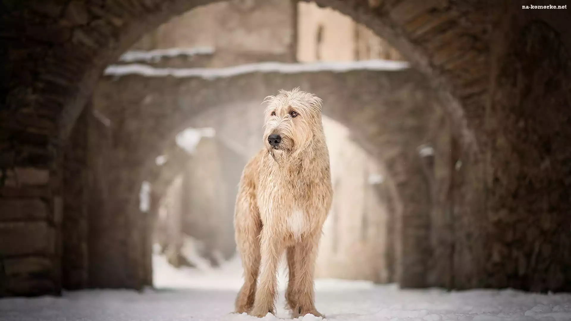 Pies, Śnieg, Wilczarz irlandzki, Zabudowania na Komórkę