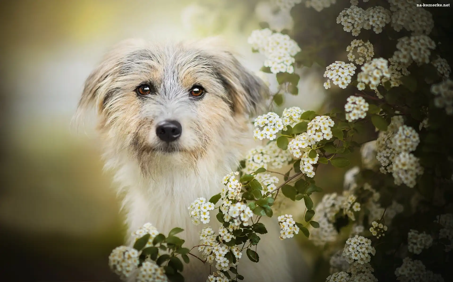 Pies, Tawuła, Kwiaty, Gałązki na Komórkę