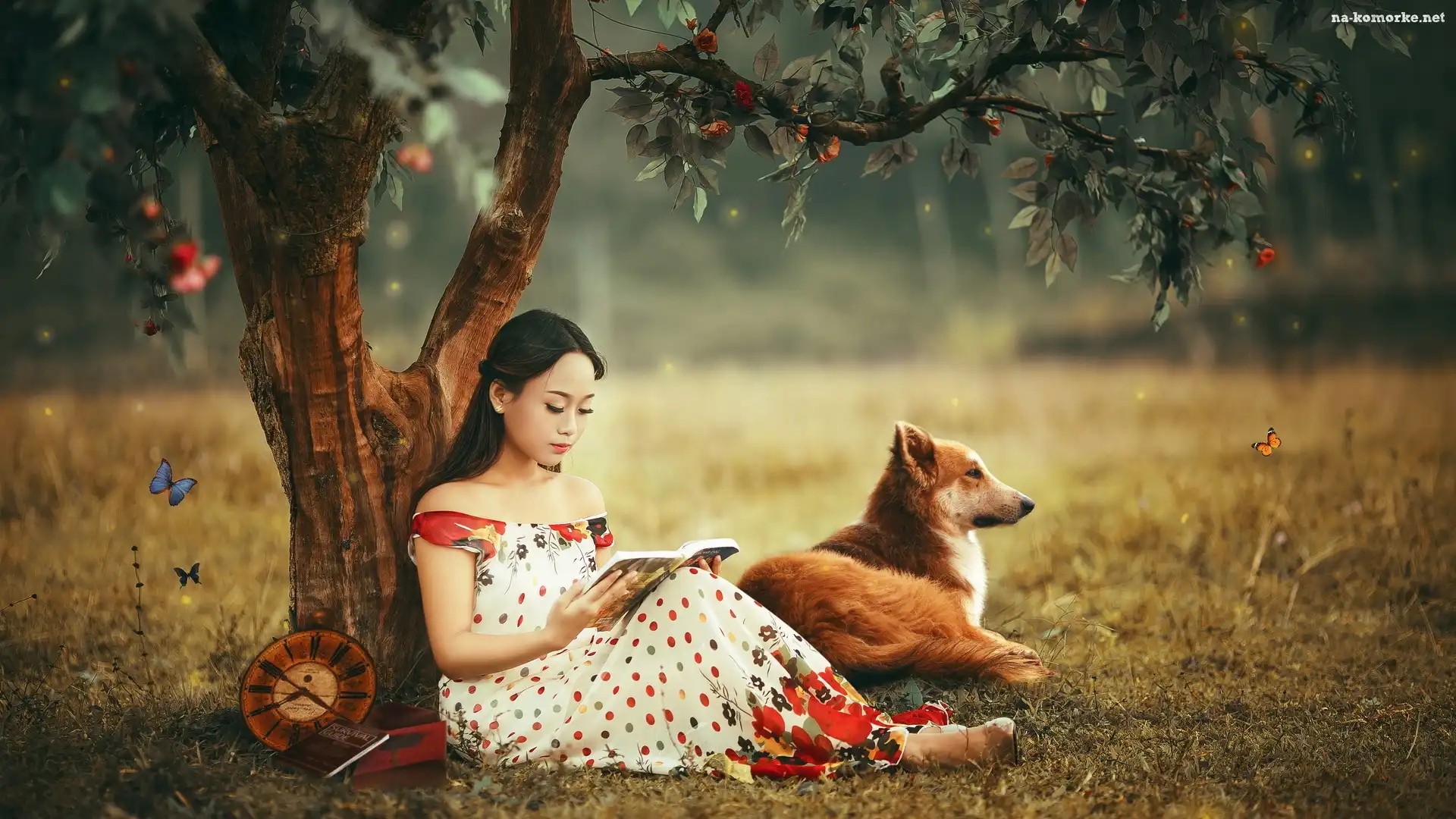 Las, Motyle, Dziewczyna, Pies na Komórkę