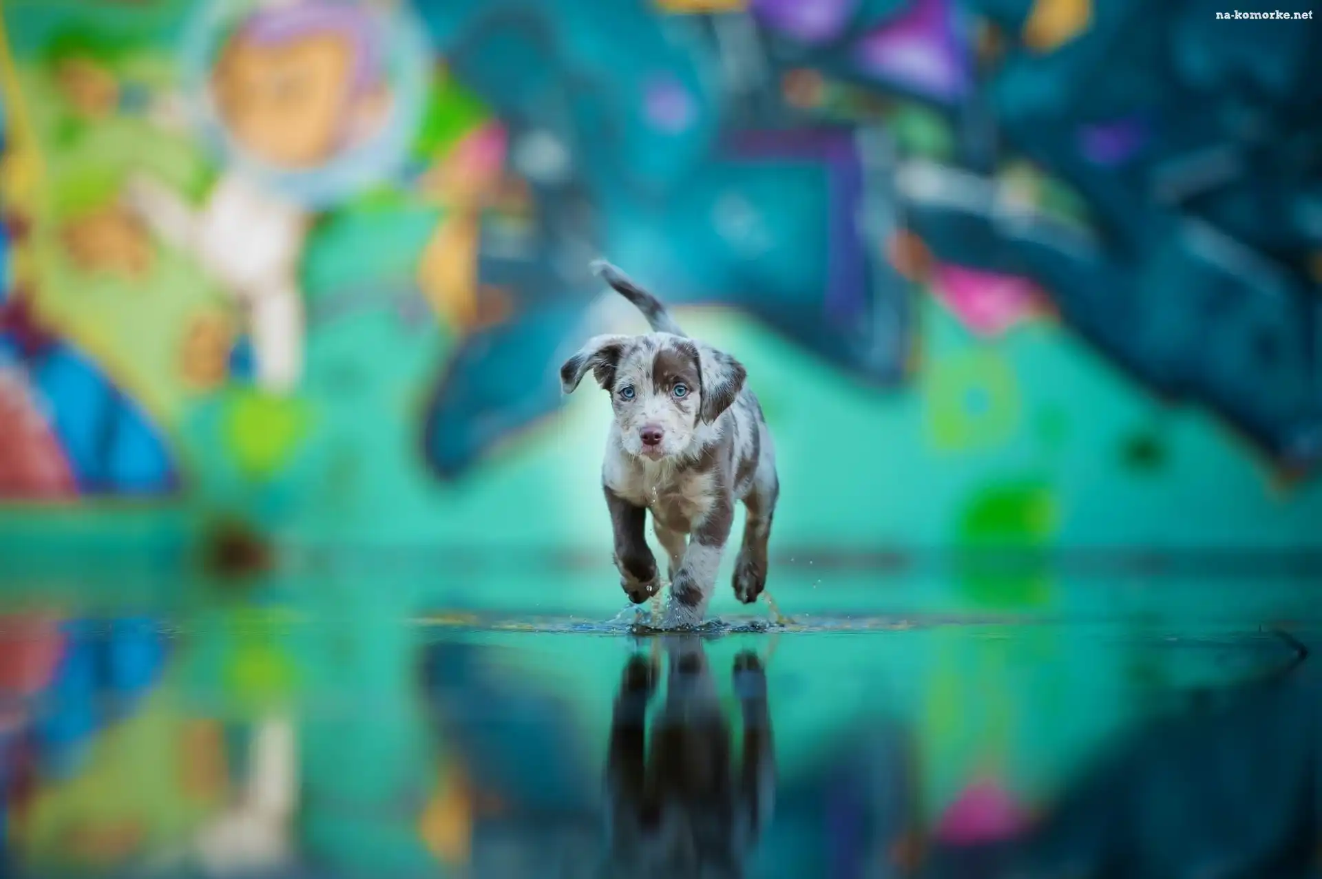 Pies, Woda, Niebieskie Oczy na Komórkę