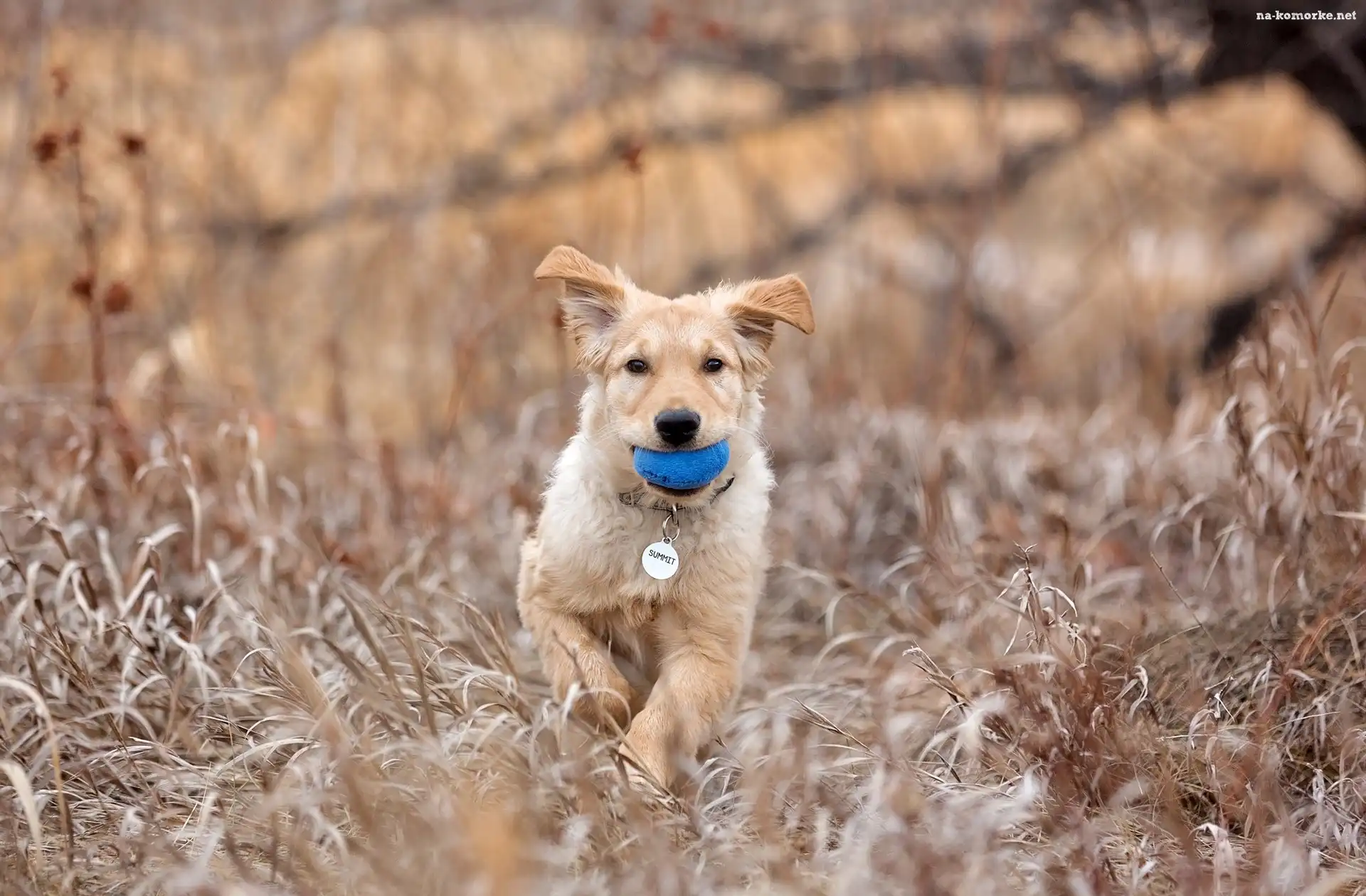 Pies, Trawa, Obroża, Piłka na Komórkę