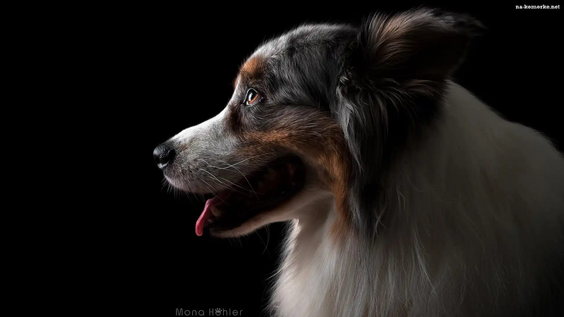 Pies, Ciemne tło, Profil, Owczarek australijski na Komórkę