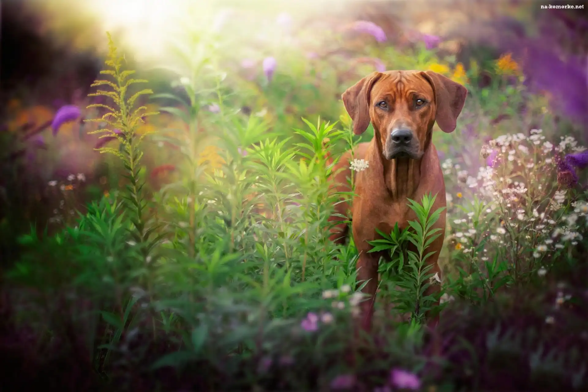 Pies, Łąka, Rhodesian ridgeback, Rośliny na Komórkę