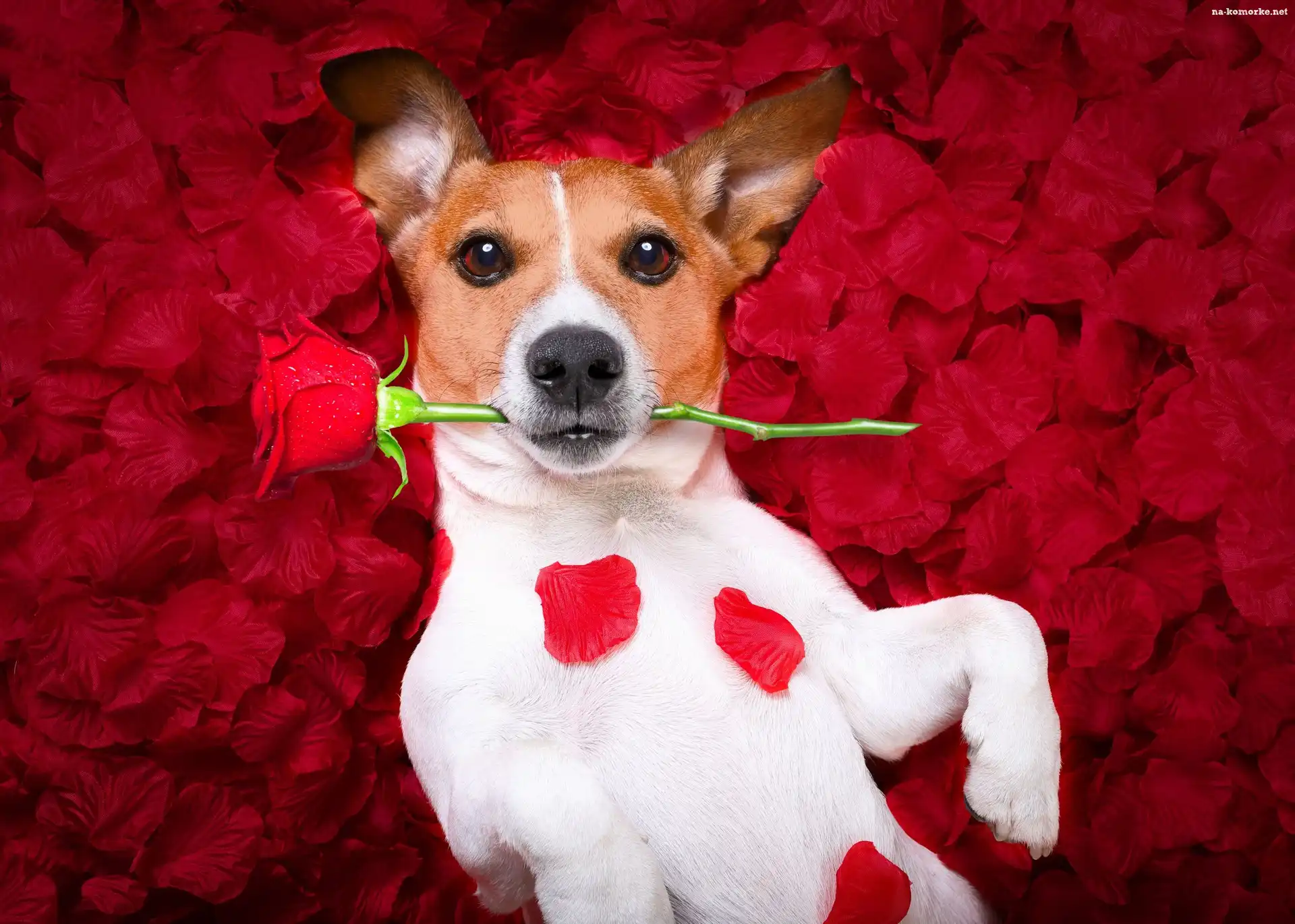 Pies, Płatki, Jack Russell terrier, Róża na Komórkę