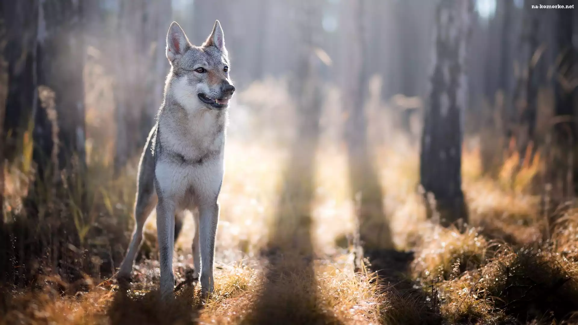 Trawa, Pies, Wilczak czechosłowacki, Las, Promienie słońca na Komórkę