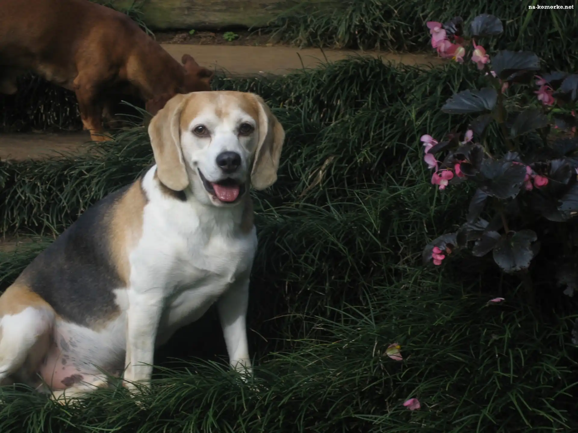 Piesek, Kwiatki, Beagle, Trawa na Komórkę
