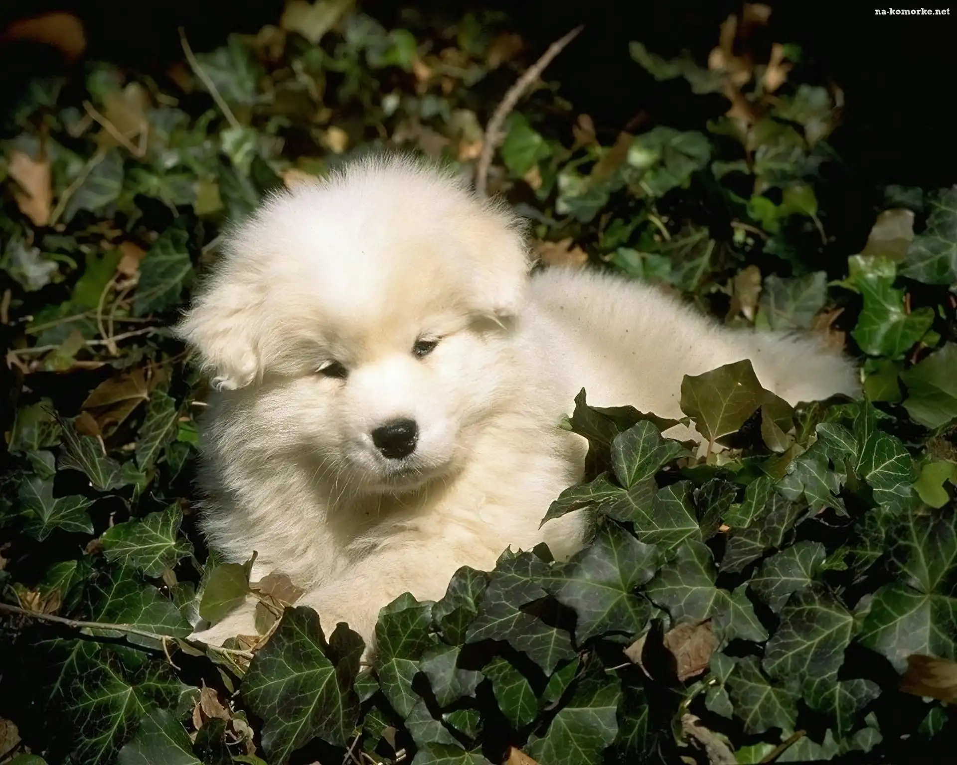 Piesek, Liście, Biały, Szczeniak na Komórkę