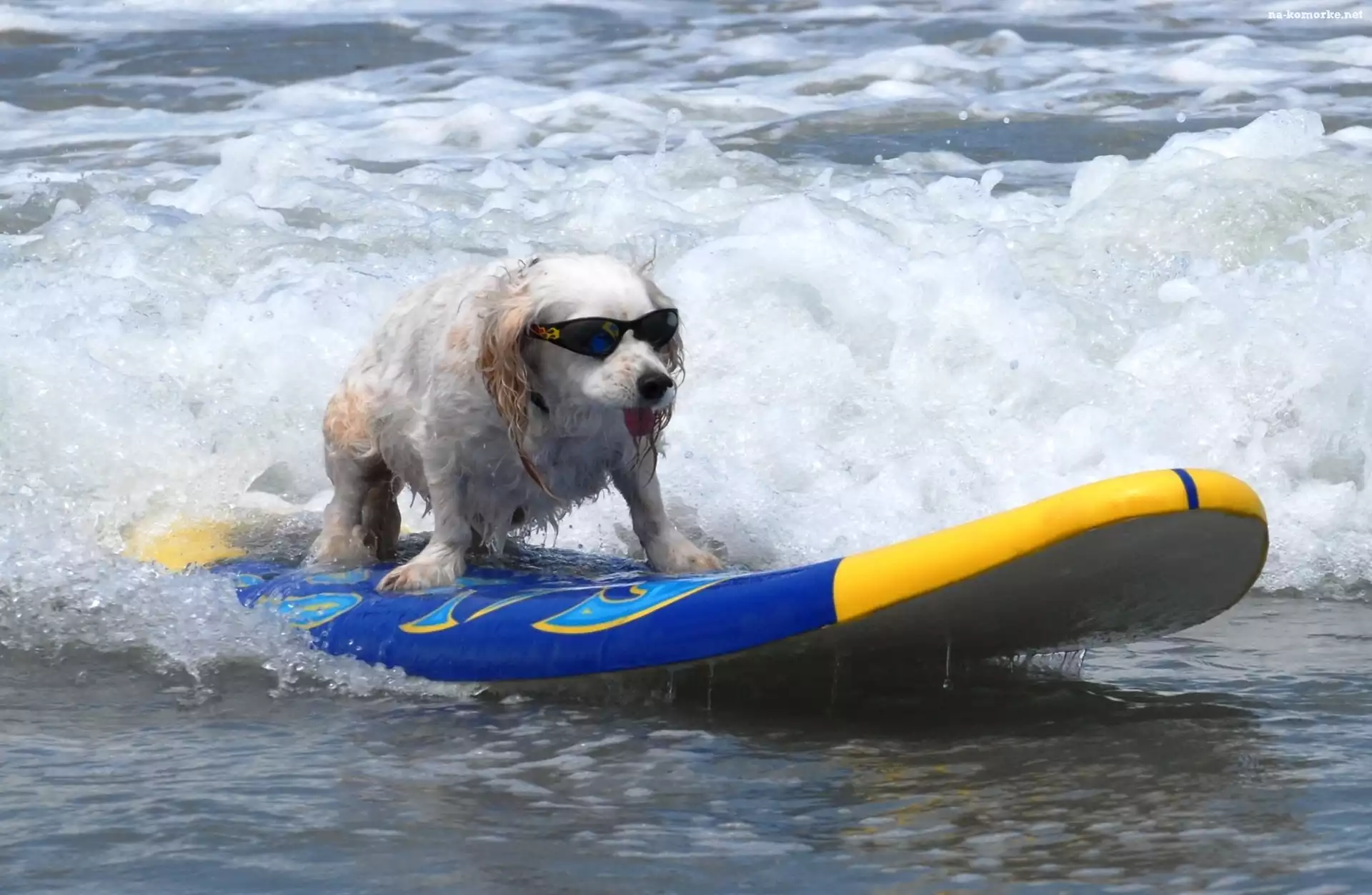 Piesek, Surfing, Okulary, Morze na Komórkę