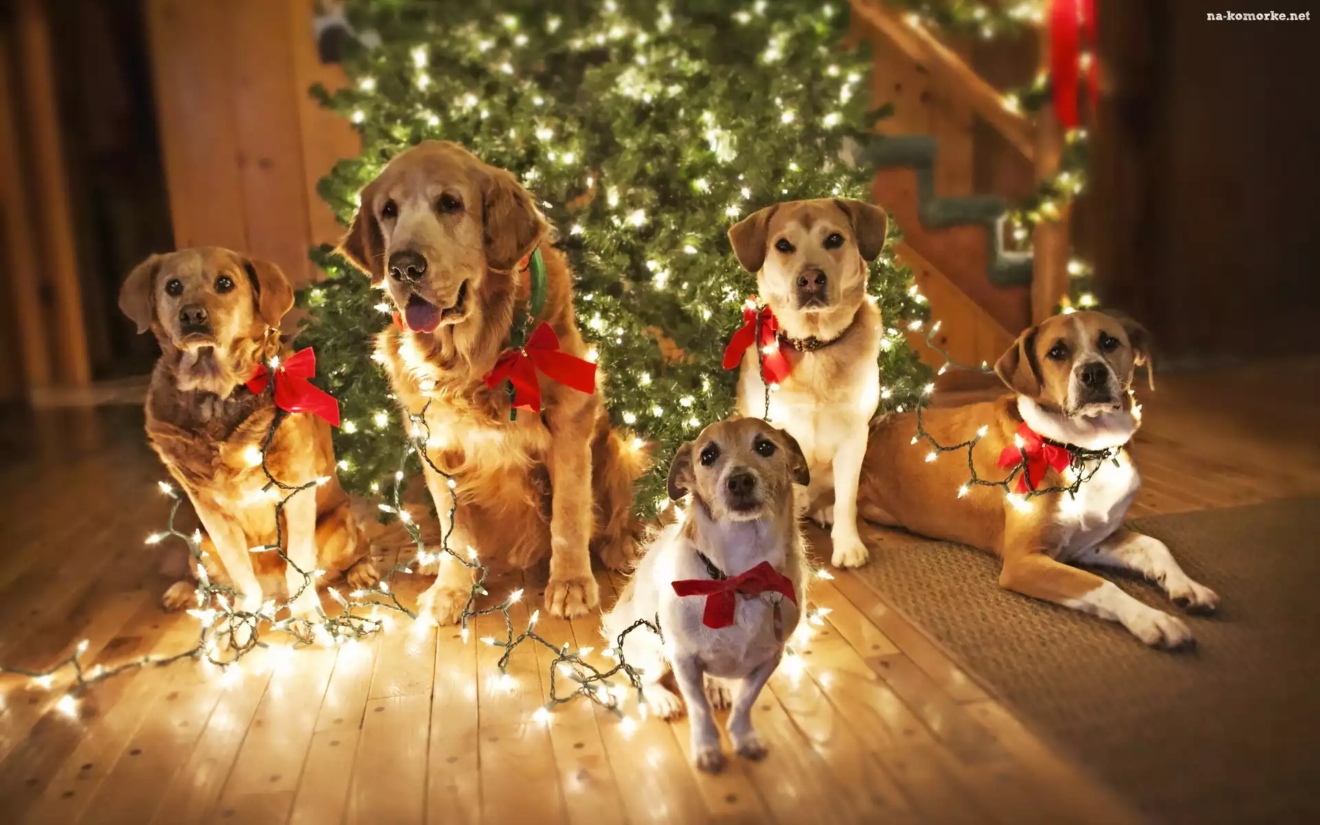 Pieski, Święta, Choinka, Oświetlenie na Komórkę